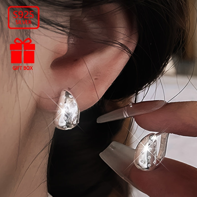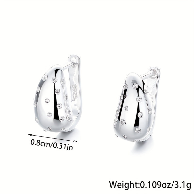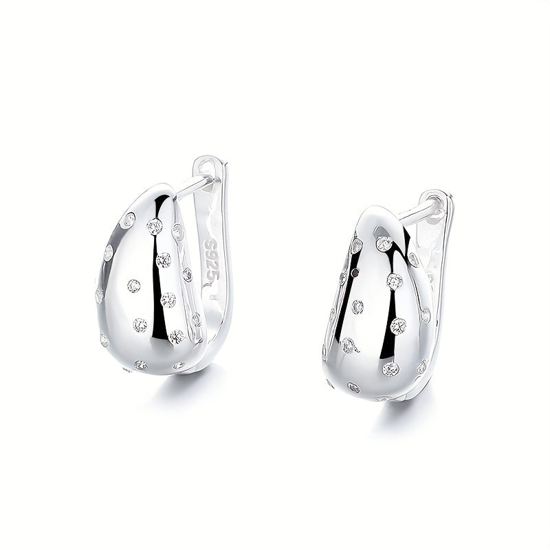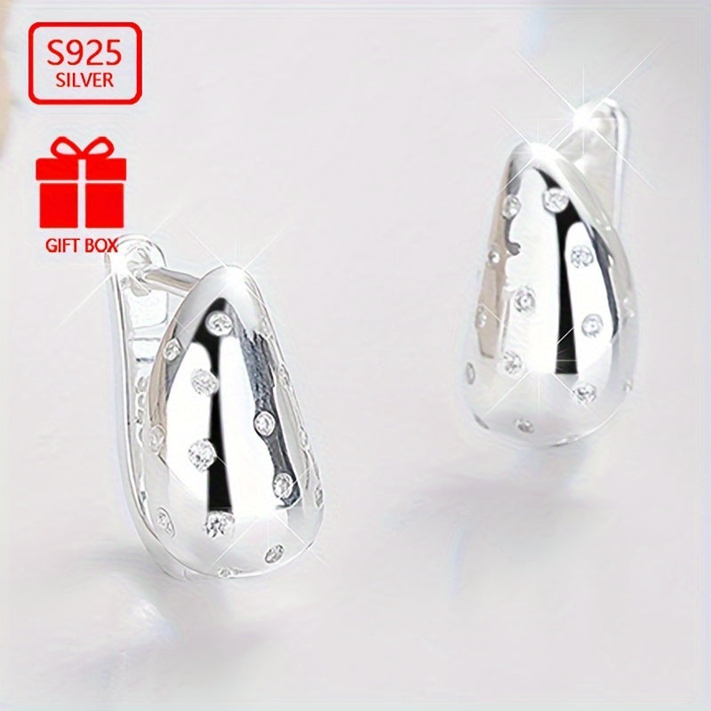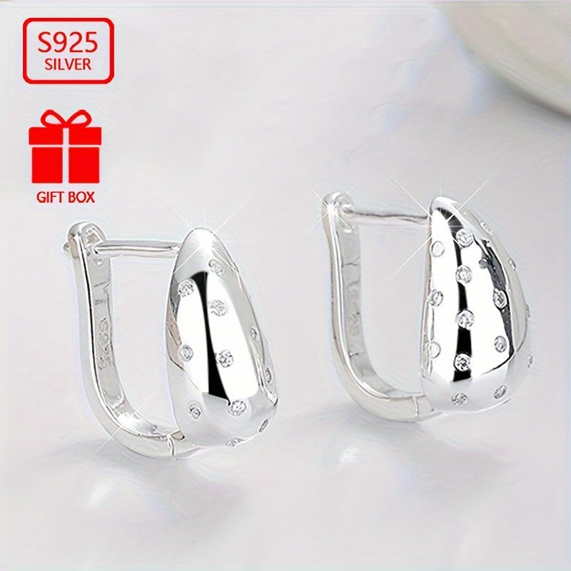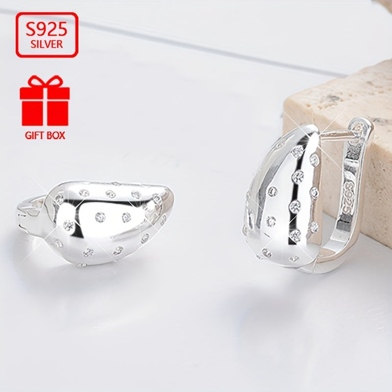 These stylish hoop earrings are made of high-quality 925 sterling silver and feature a geometric drop shape. They are perfect for daily wear, travel, and various activities.