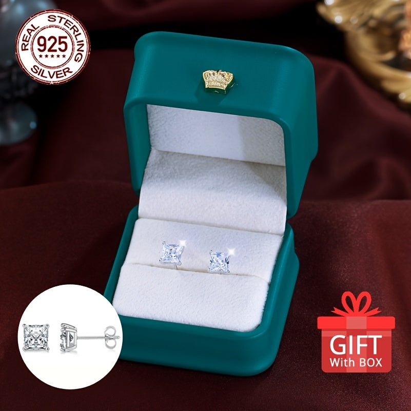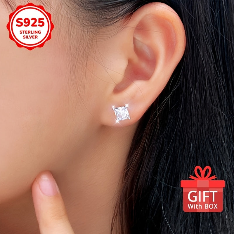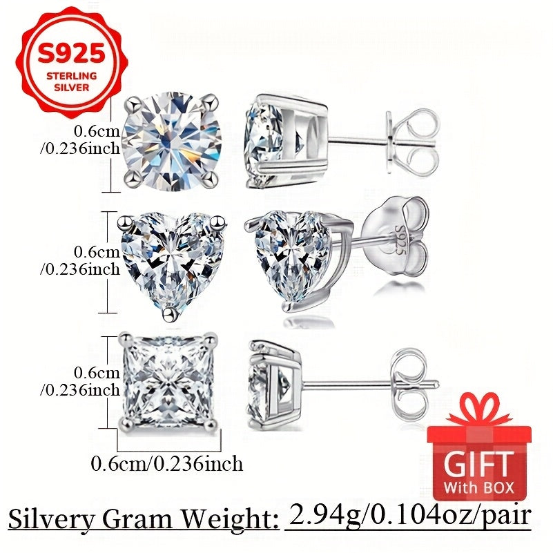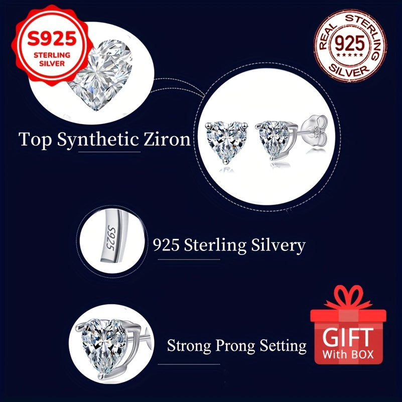925 Sterling Silver Heart Shaped Women's Earrings with Zirconia Inlay