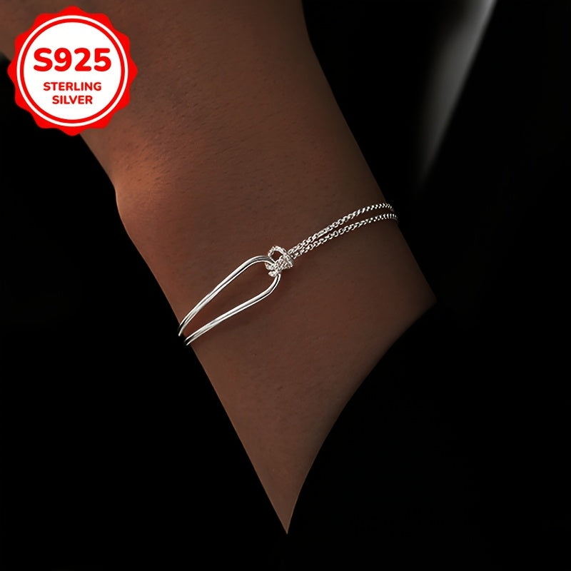 Add a touch of elegance to your casual attire with this double-layered knot bracelet. Made from high-quality 925 sterling silver, this bracelet is perfect for everyday wear and makes a great gift for a loved one.