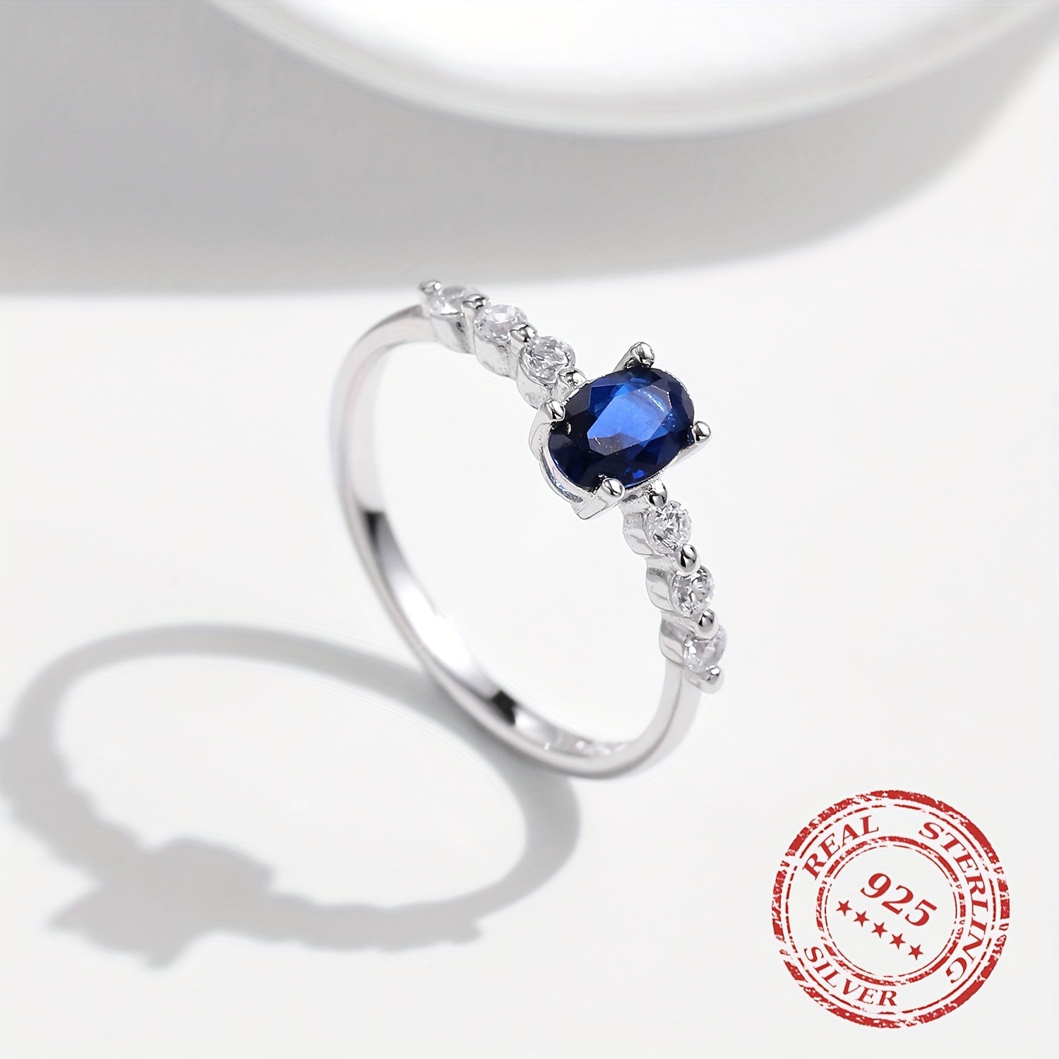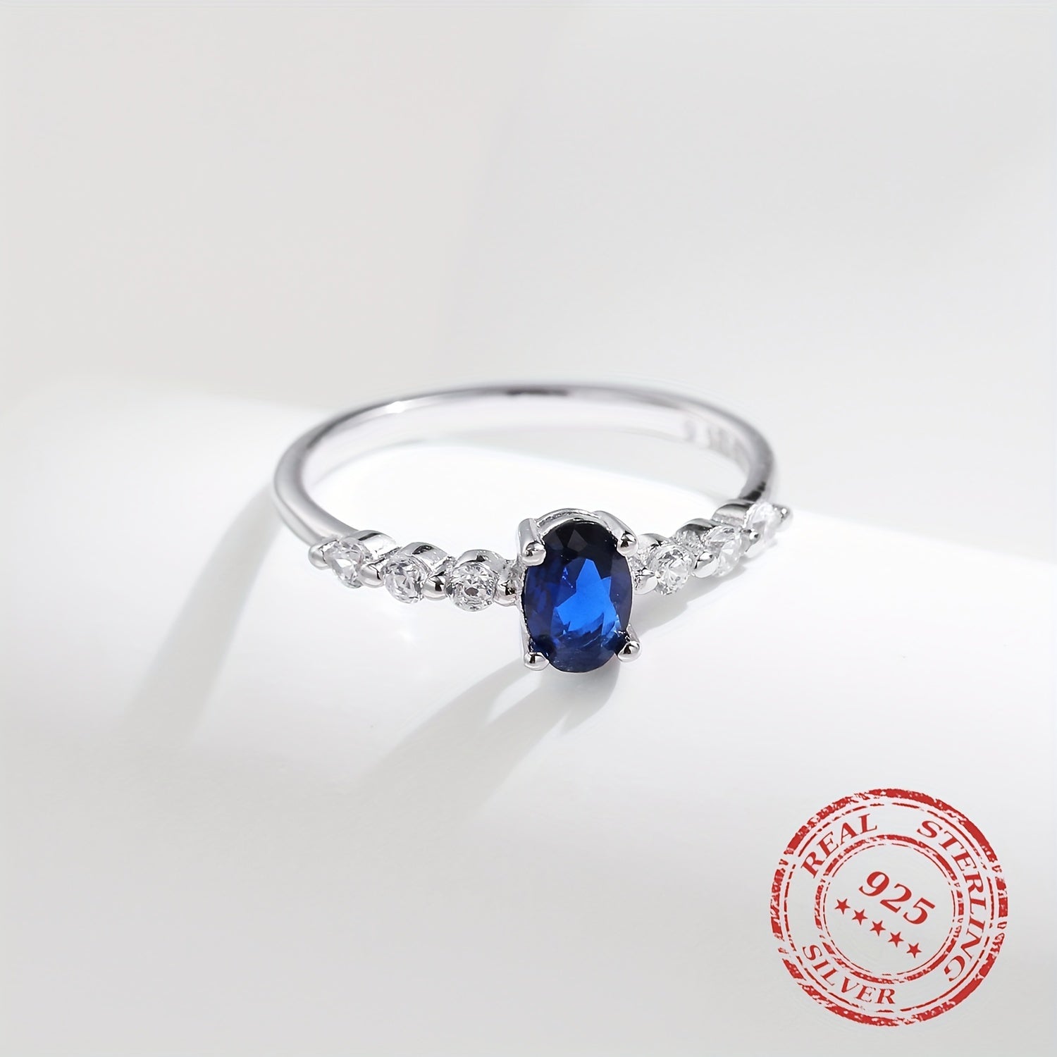 925 Sterling Silver Oval zirconia Ring Vintage Women Statement Jewelry