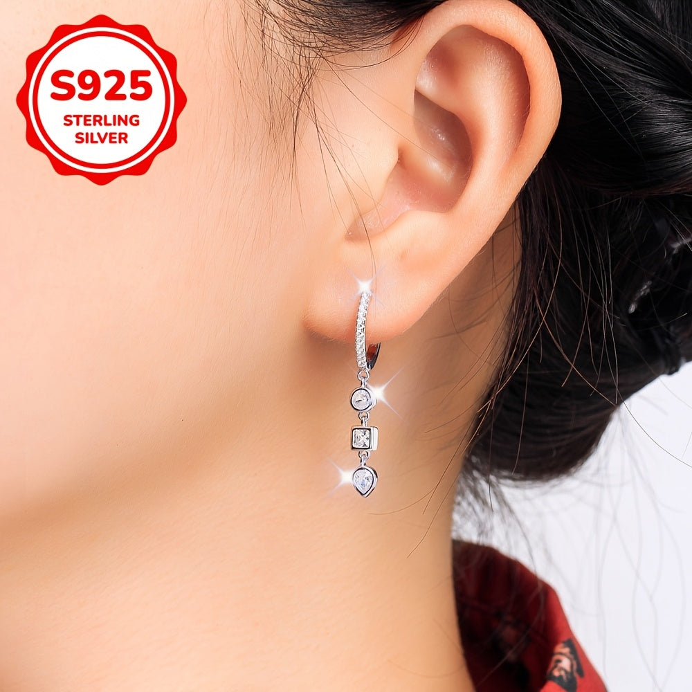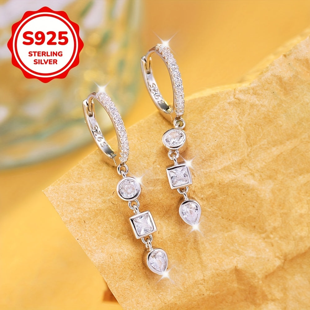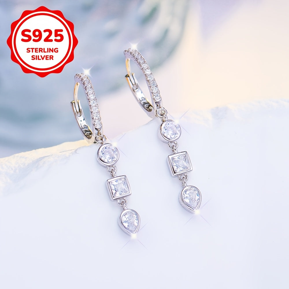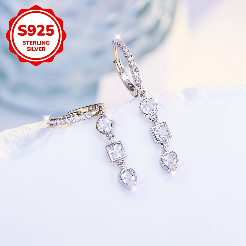 925 Sterling Silver Sparkling Zirconia Tassel Hoop Earrings