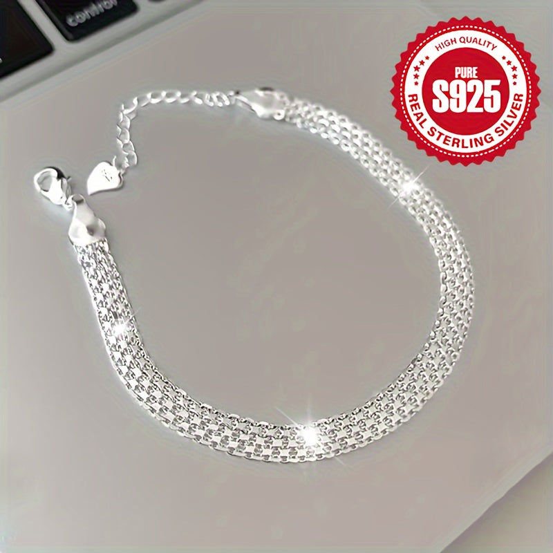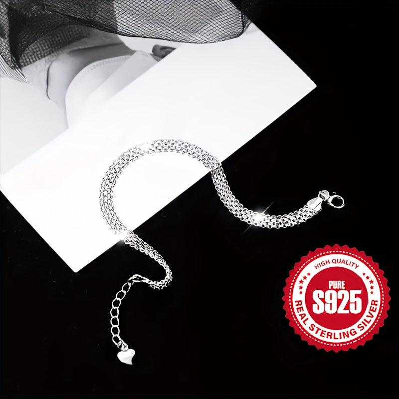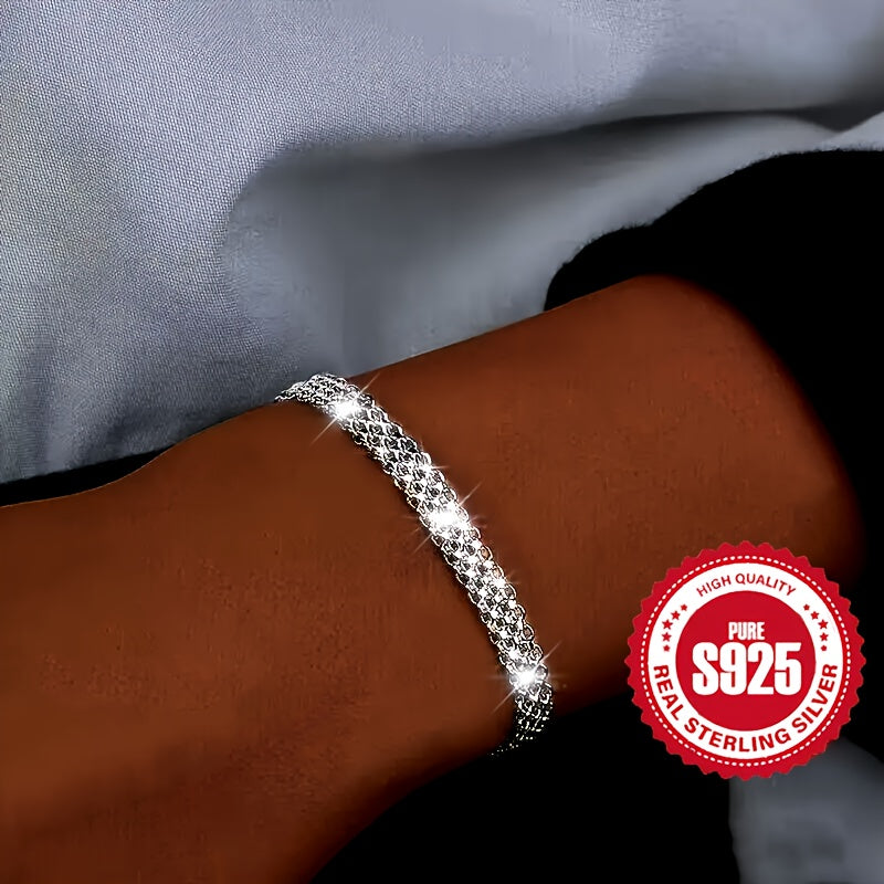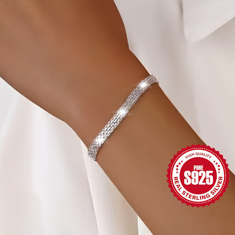 This sparkling mesh bracelet is made of 925 pure silver, suitable for daily wear, parties, and festive occasions. It is hypoallergenic and weighs 3.8g.