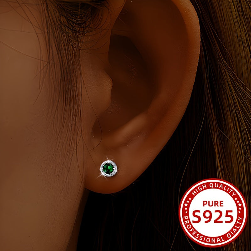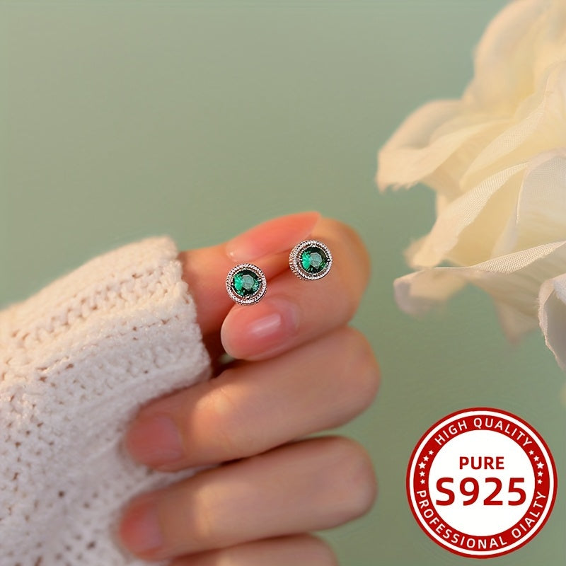 Baroque Carved Green Zirconia Earrings 925 Pure Silver 1.01g