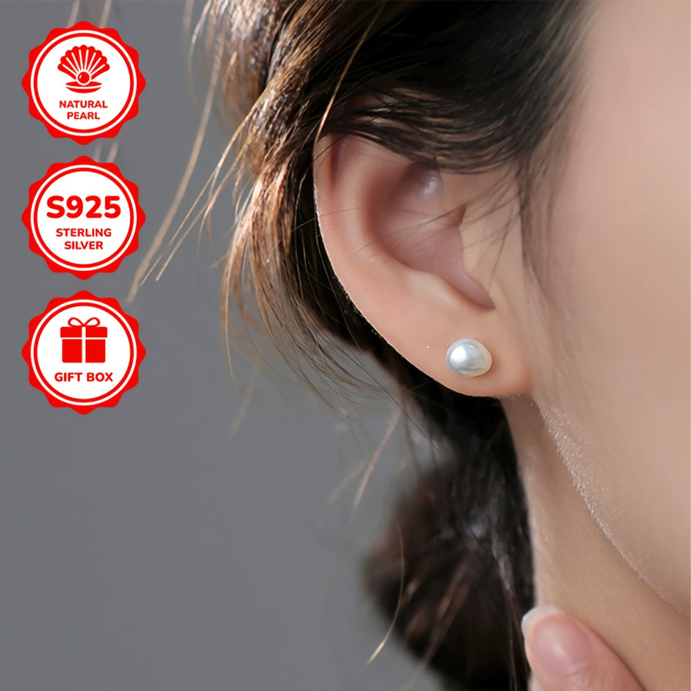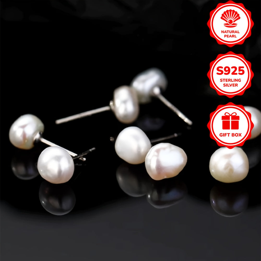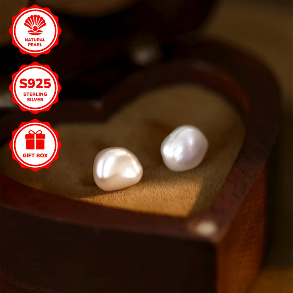 This elegant pair of earrings features genuine baroque freshwater pearls set in pure silver. Perfect for adding a touch of style to any outfit.