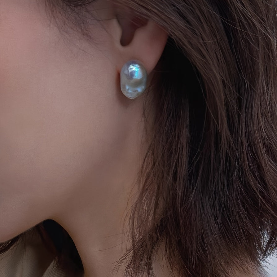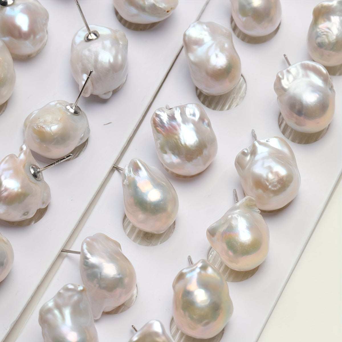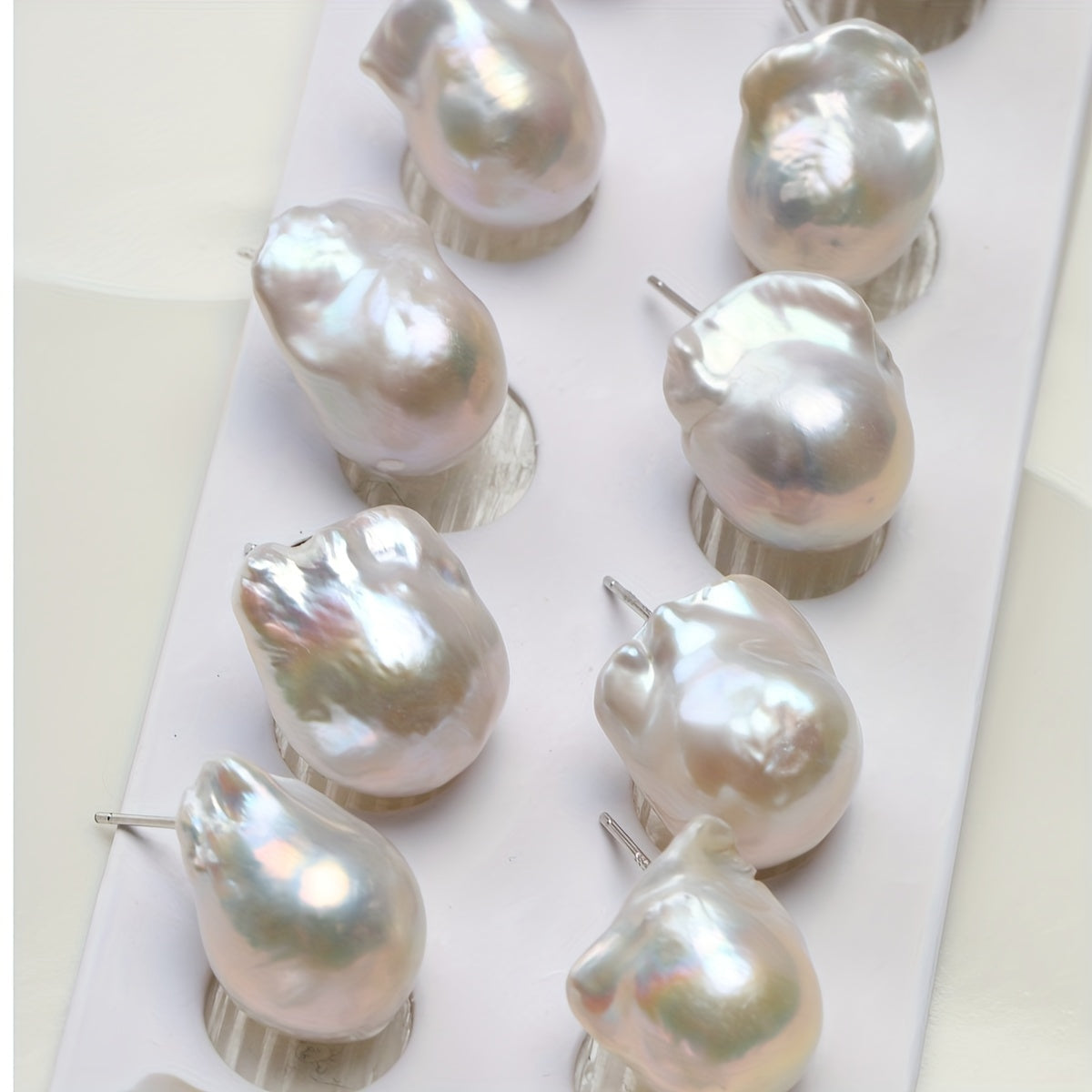 Classic French style earrings featuring natural irregular 15-20mm freshwater pearls, plated with S925 sterling silver.