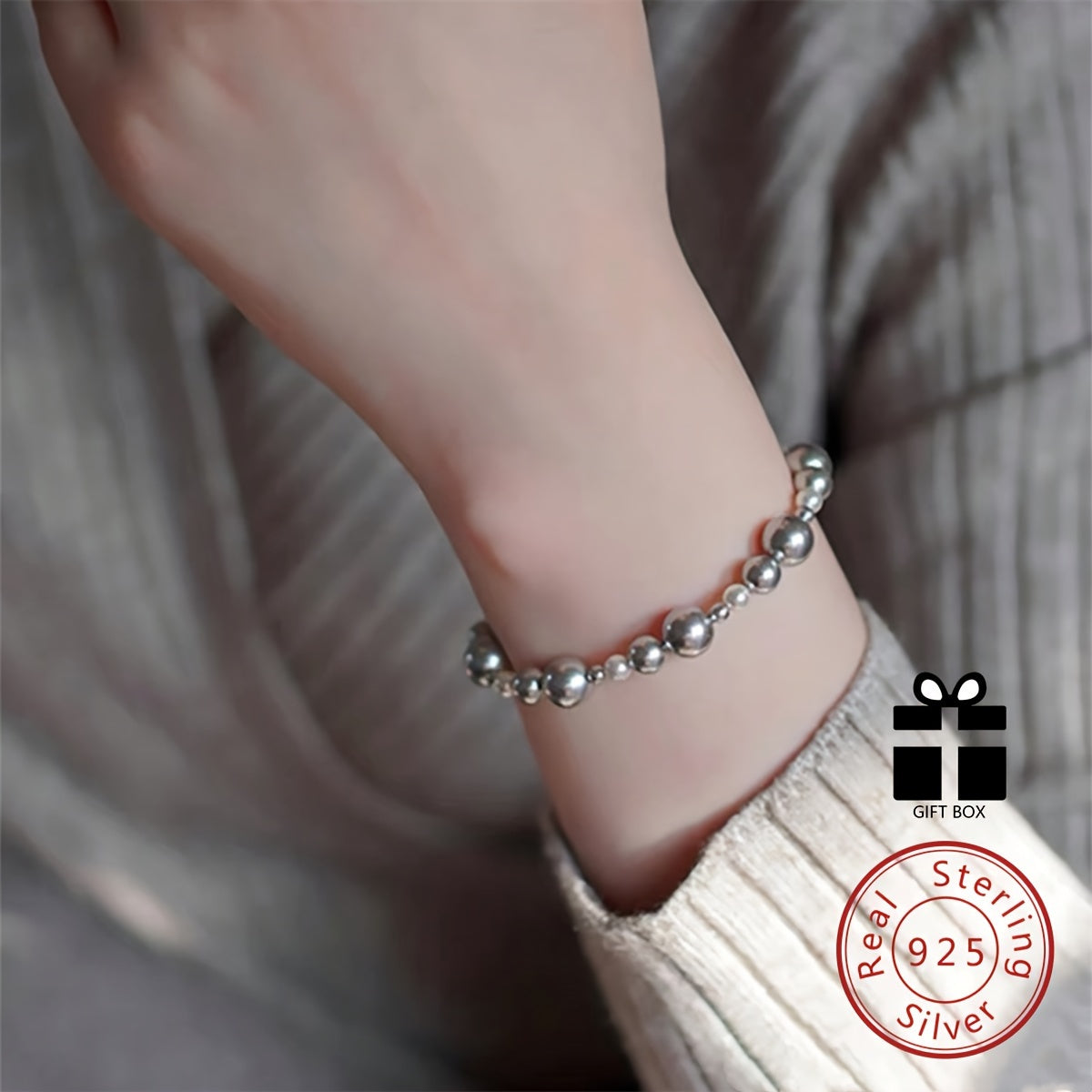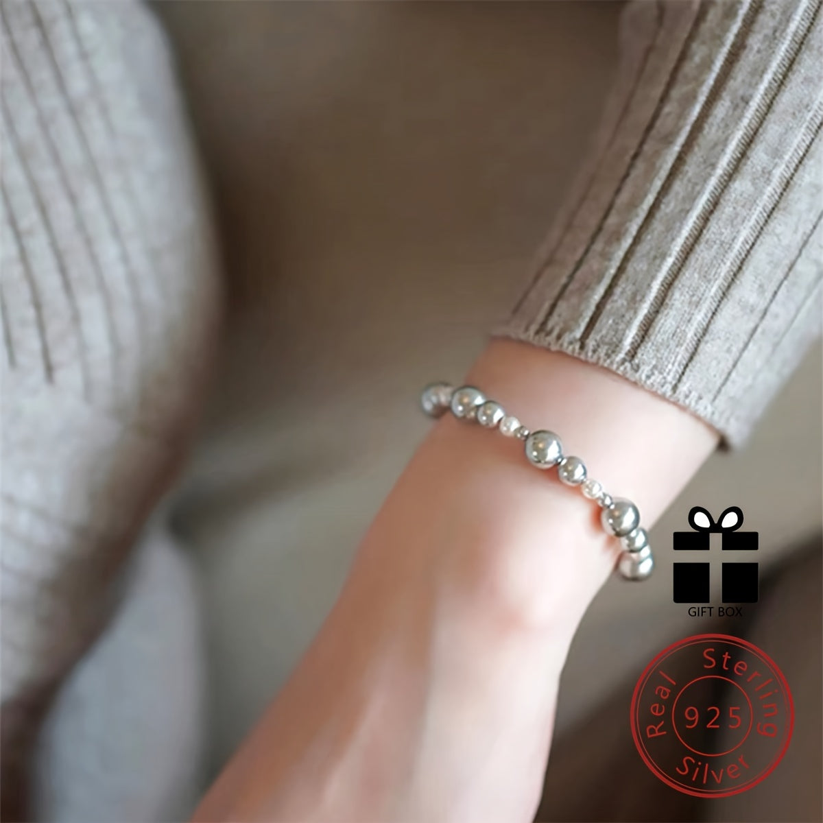 Bohemian 925 Silver Bead Bracelet, Adjustable, DIY, Daily Wear