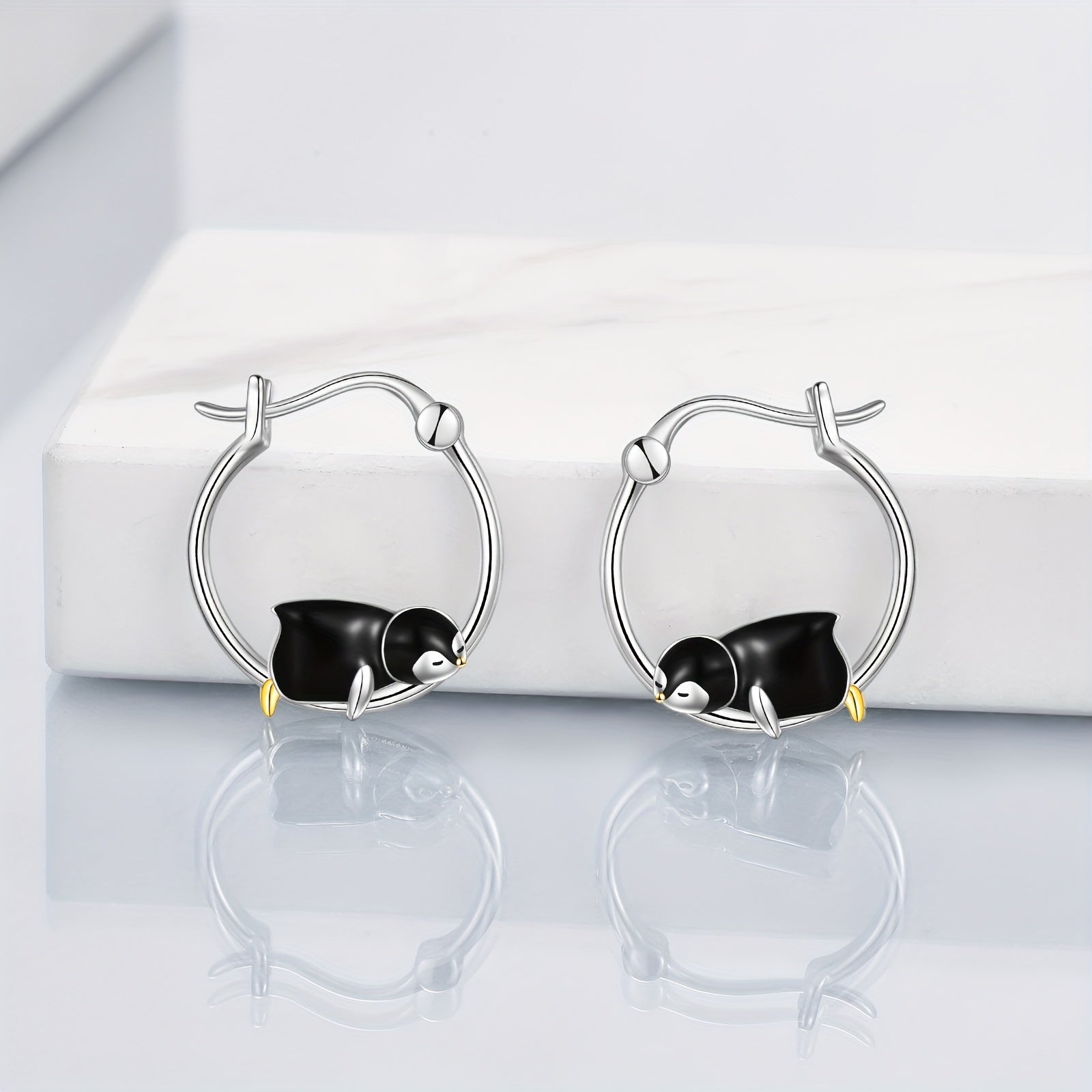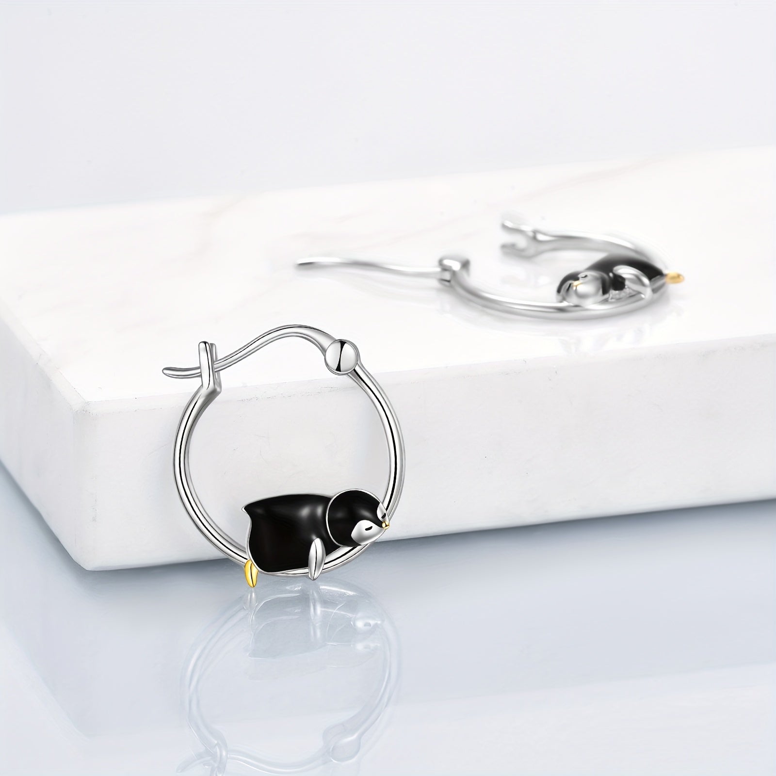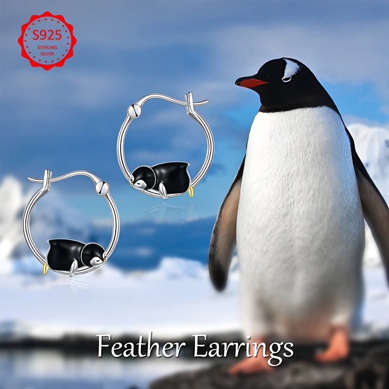 Adorable penguin earrings made from pure silvery material, perfect gift for women and daughters.