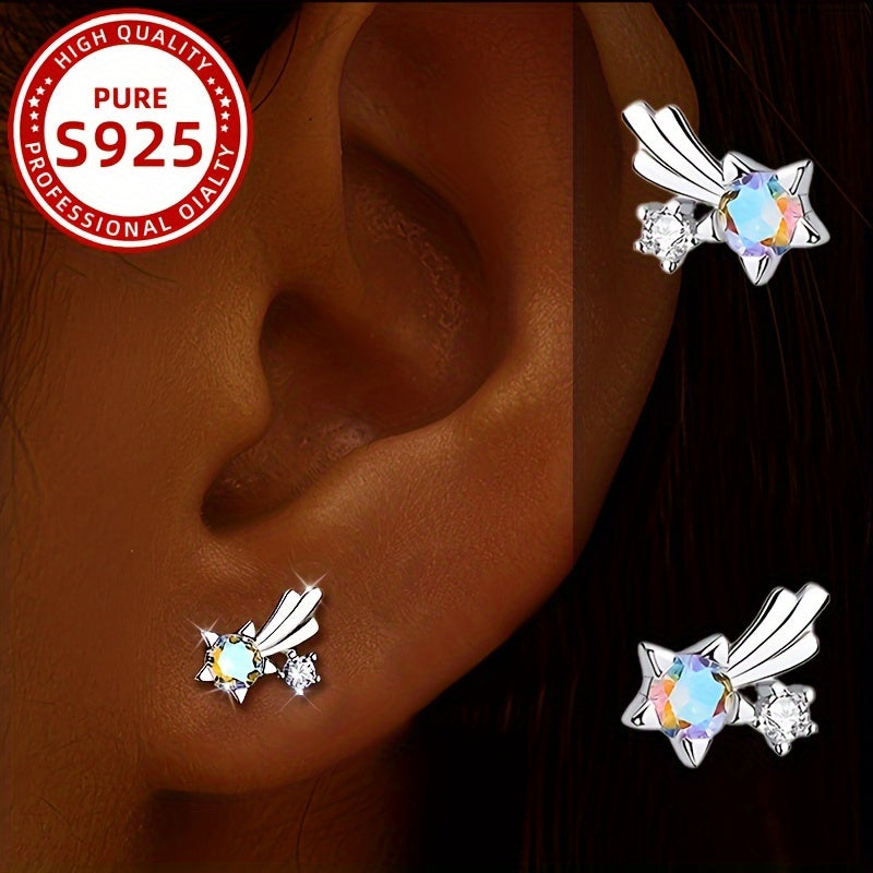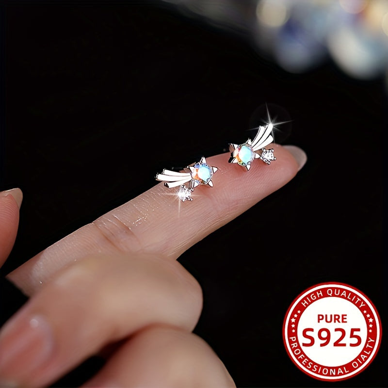 Colorful Flash Star Stud Earrings - 925 Pure Silver