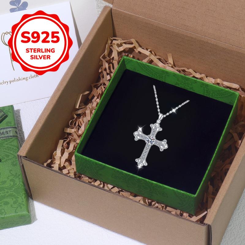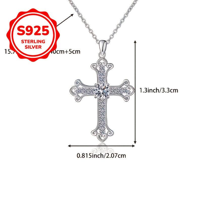 Add a touch of timeless elegance with this classic cross peony pendant necklace. Crafted with synthetic cubic zirconia and S925 silver, this high-end piece is perfect for any occasion.