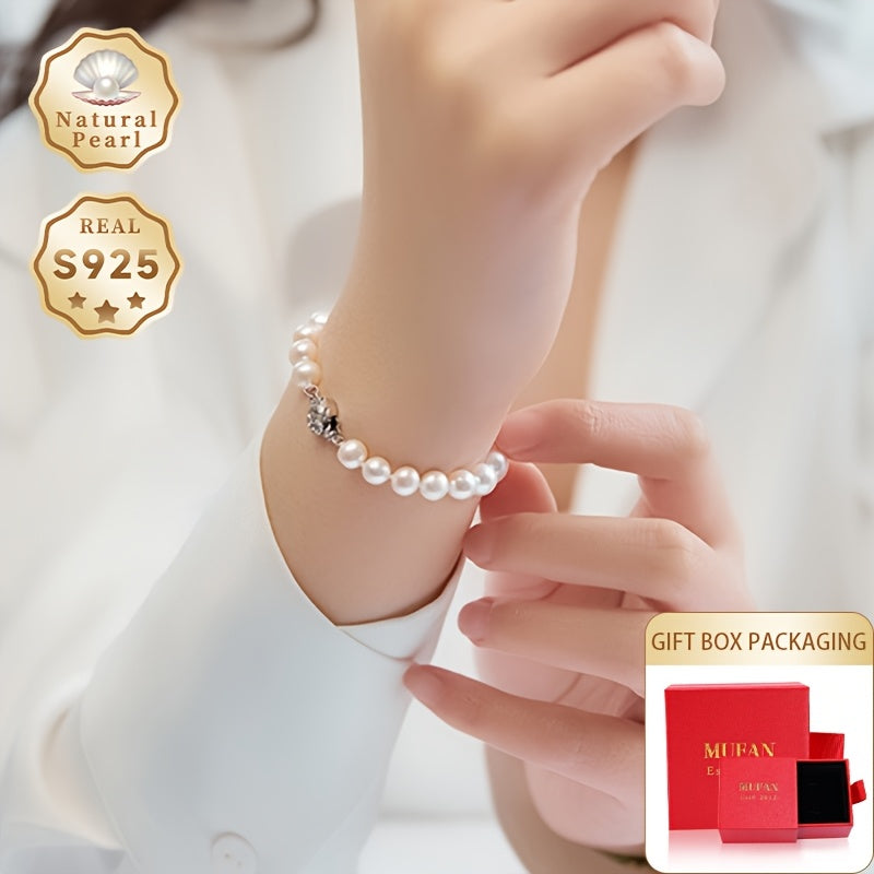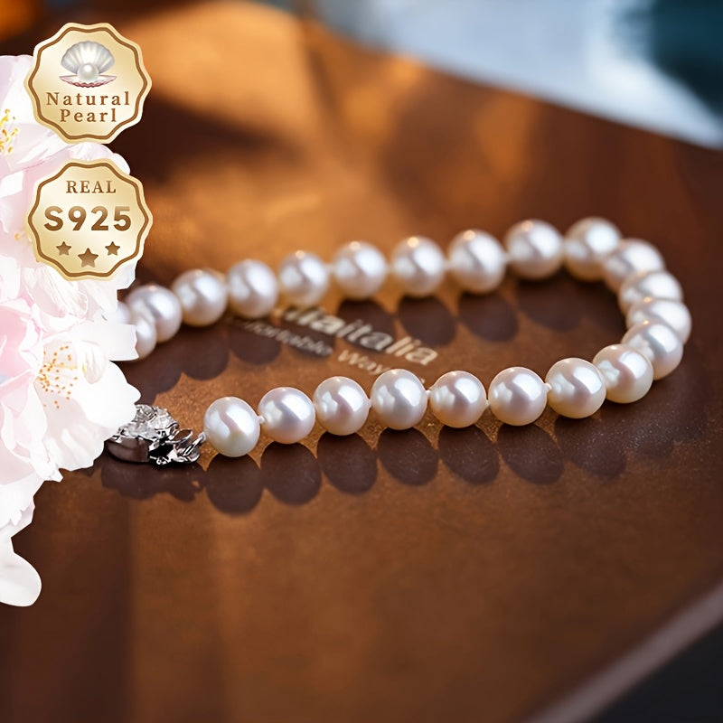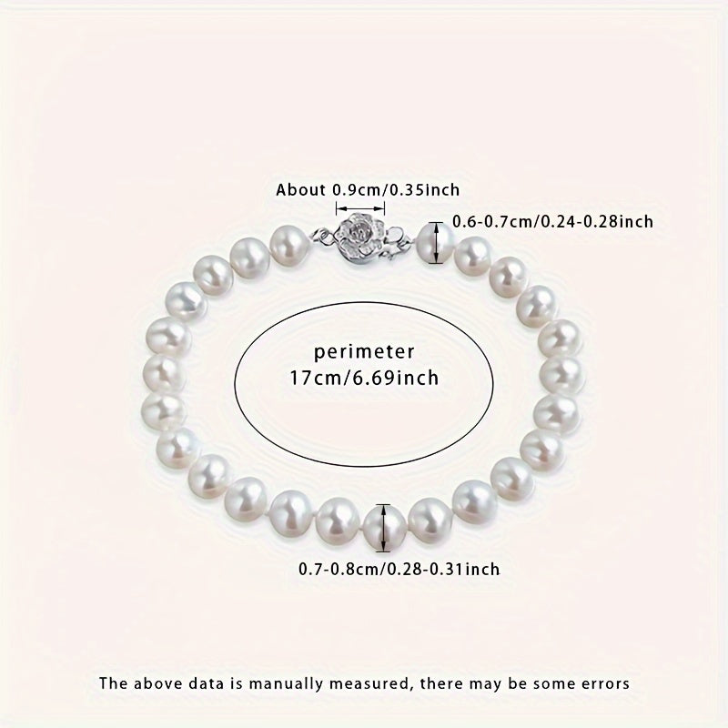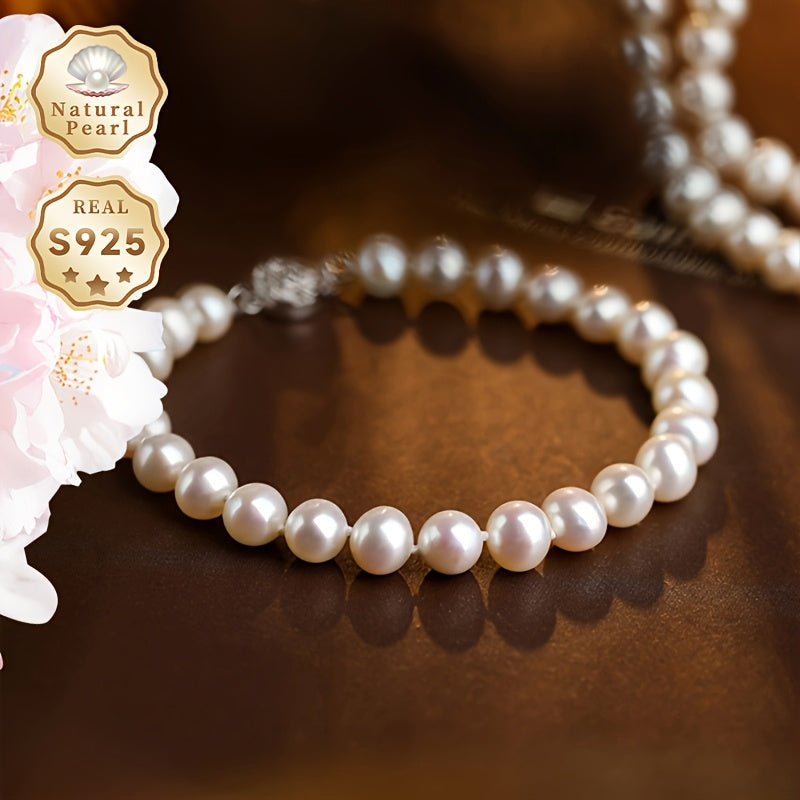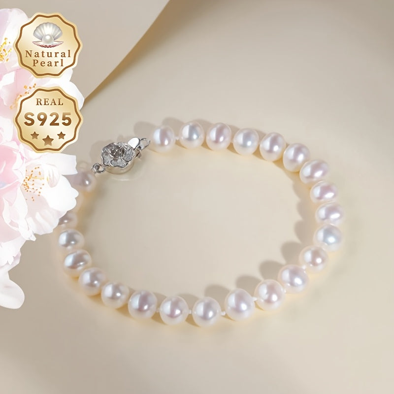 Elegantly designed vintage style bracelet made of 925 sterling silver with 7 8mm natural freshwater pearls, perfect for daily wear and gifting on all occasions throughout the year.