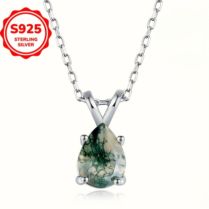 This fashionable necklace features a water drop-shaped water grass agate pendant, perfect for daily wear or parties.