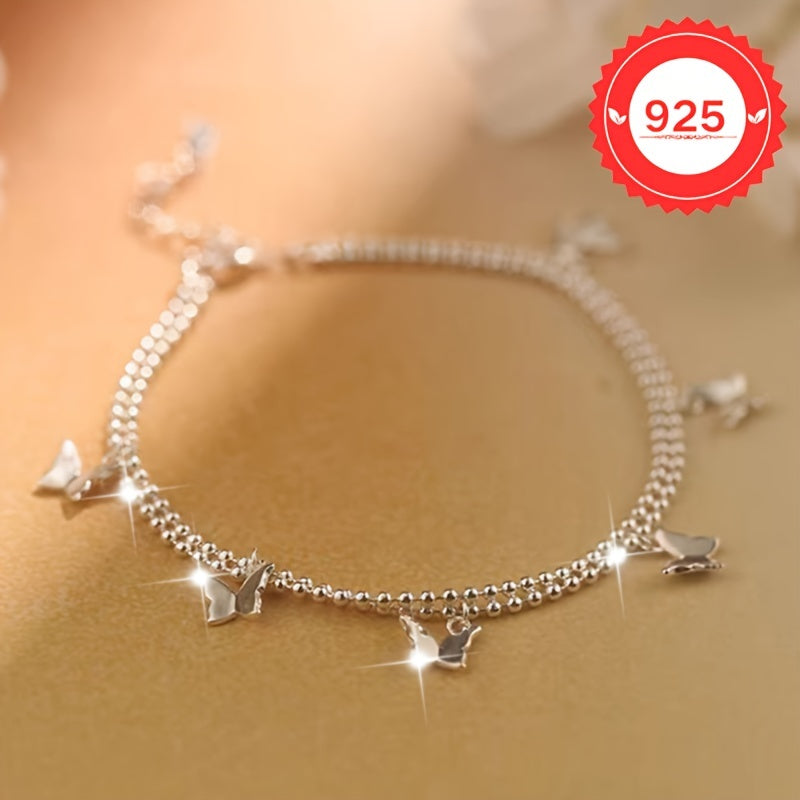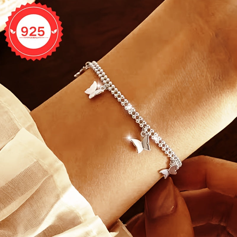 Add a touch of elegance to your everyday look with this S95 silvery bracelet. The double-layered beads, sweet butterfly charm, and tassels make it versatile and stackable.
