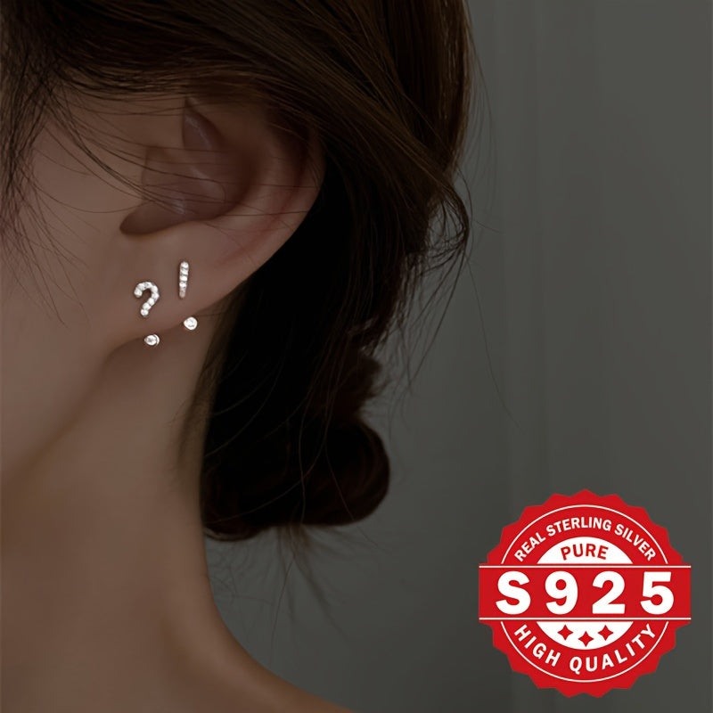 Exclamation Point Stud Earrings S925 Sterling Silver 18K Golden Plated