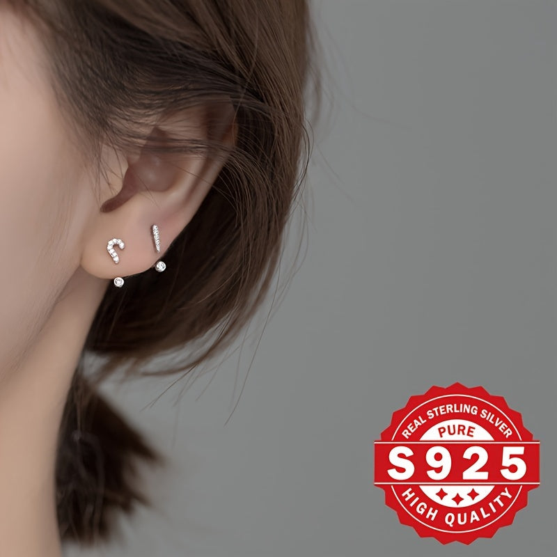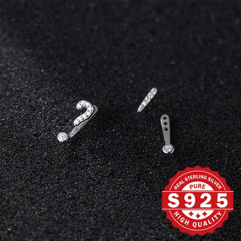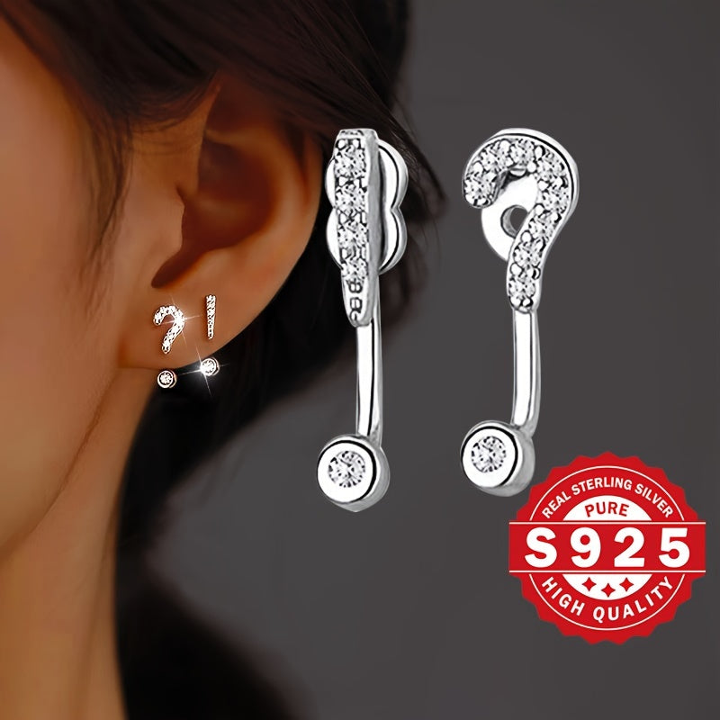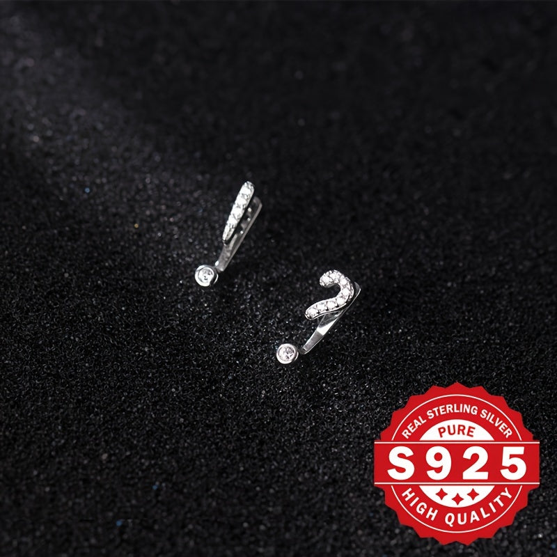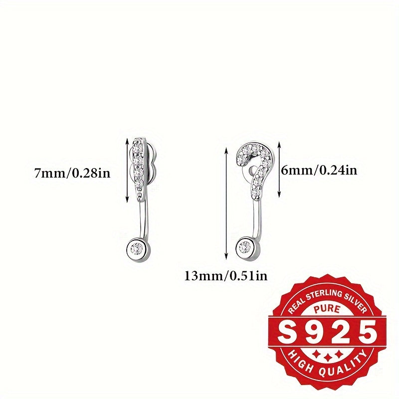 Add a playful touch to your outfit with these asymmetrical exclamation point stud earrings. Made of hypoallergenic S925 sterling silver with 18K golden plating and synthetic zirconia inlay.
