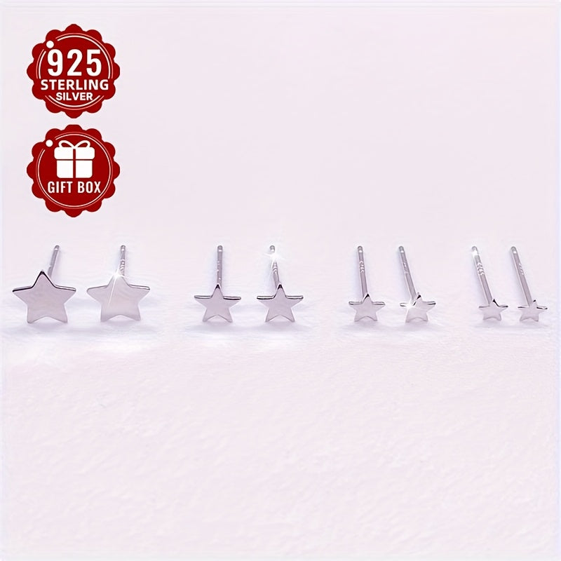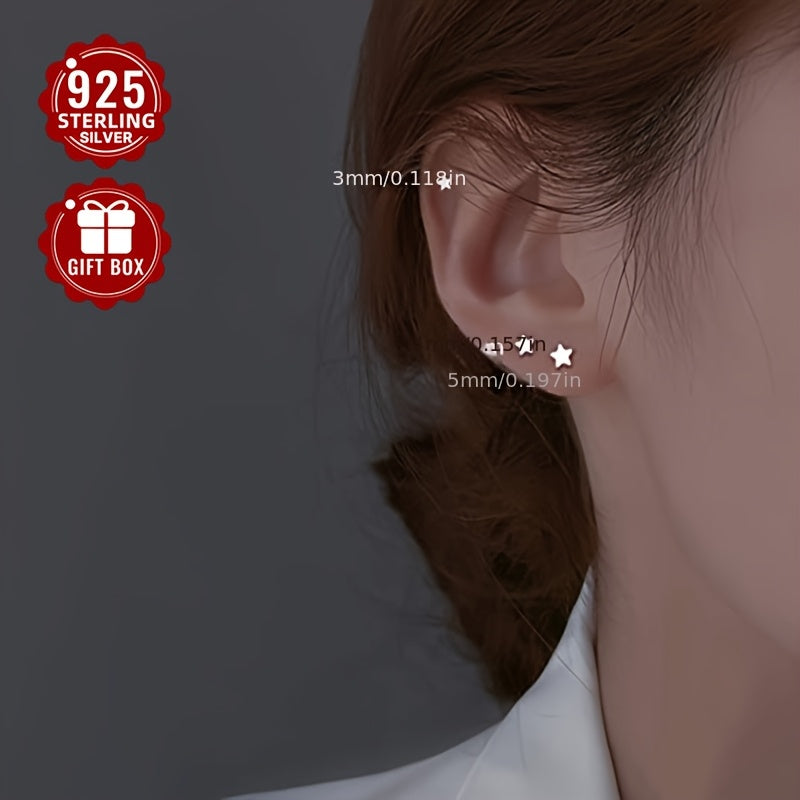These stunning 925 sterling silver earrings featuring a five-pointed star design are a perfect gift for friends. Simple yet stylish, they add a touch of elegance to any outfit.