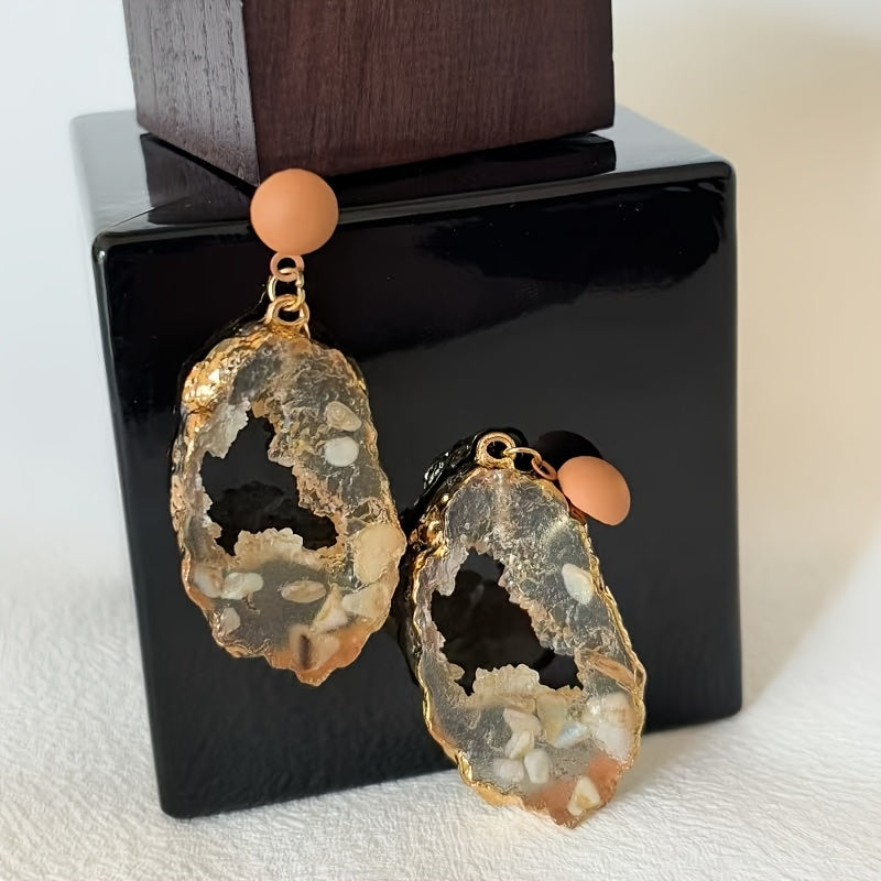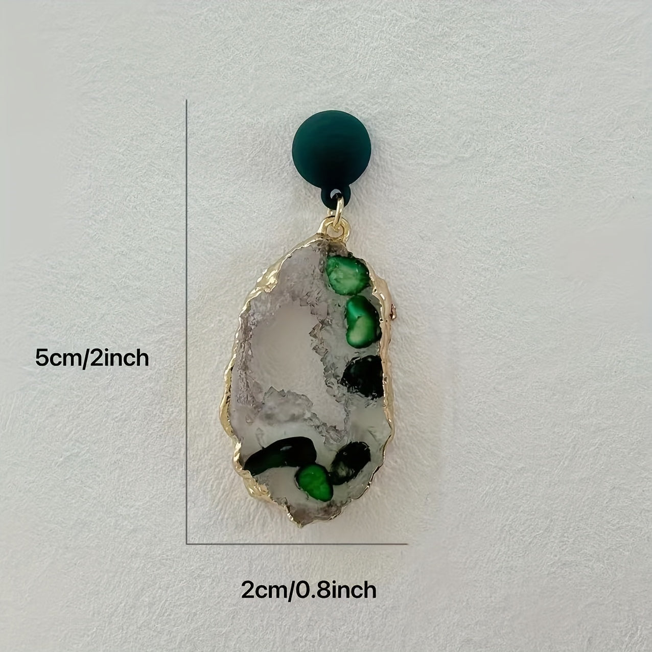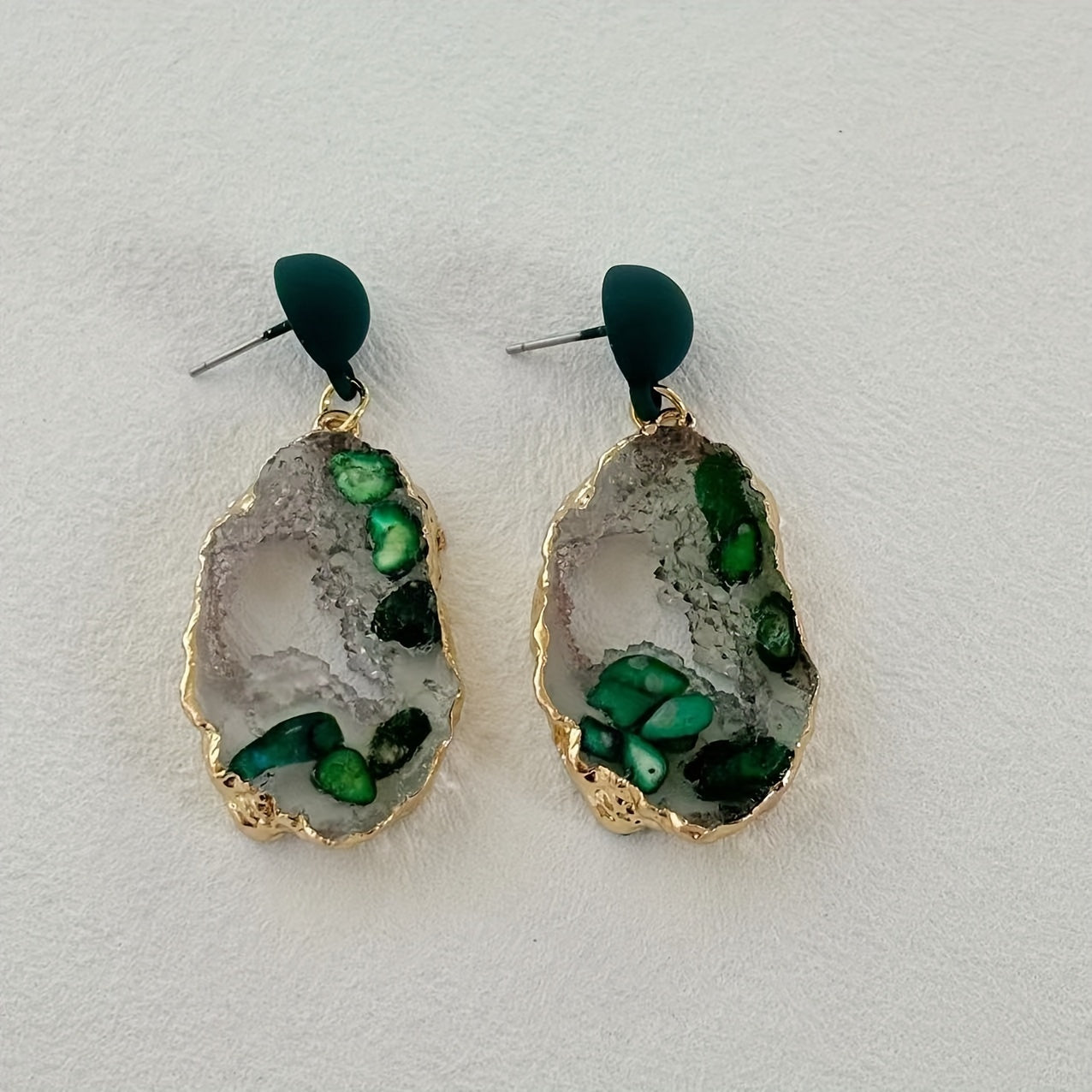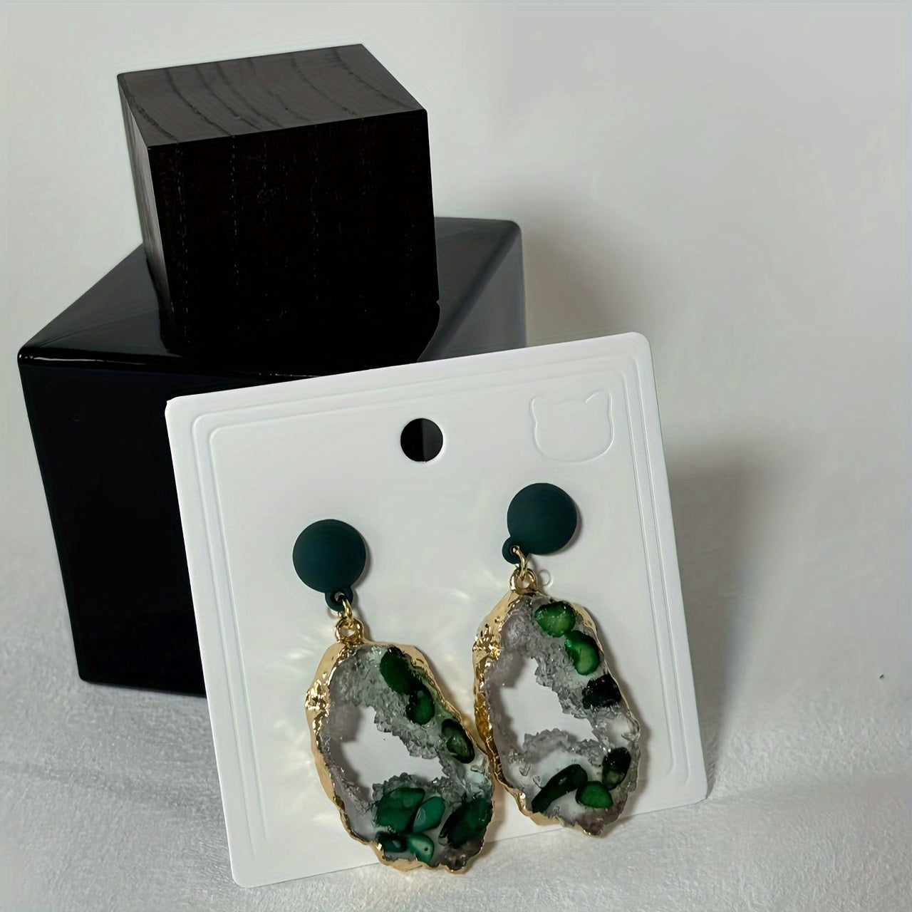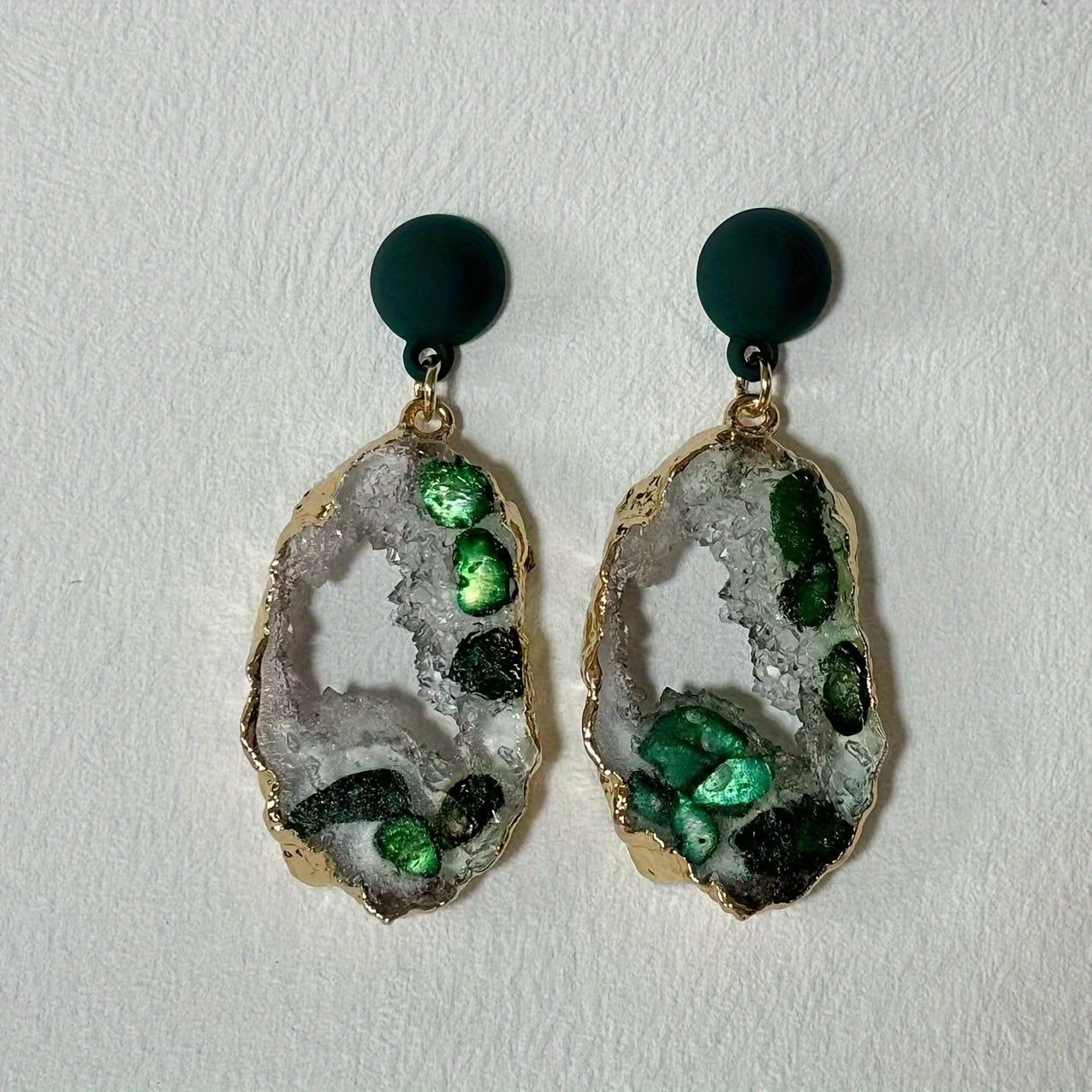 These high-end earrings are crafted with green resin and feature a hollow design. The earrings come with a 925 silver needle, giving them a luxurious touch. They are versatile and add personality to any outfit, making them a must-have for fashion-forward women.