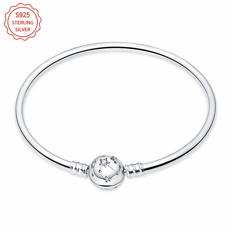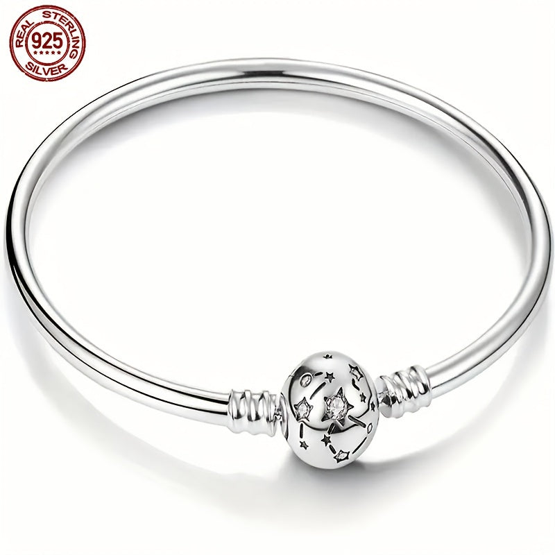 Create your own celestial accessory with this 925 sterling silver charm bracelet featuring intricate engravings of stars and planets. Ideal for DIY jewelry projects.