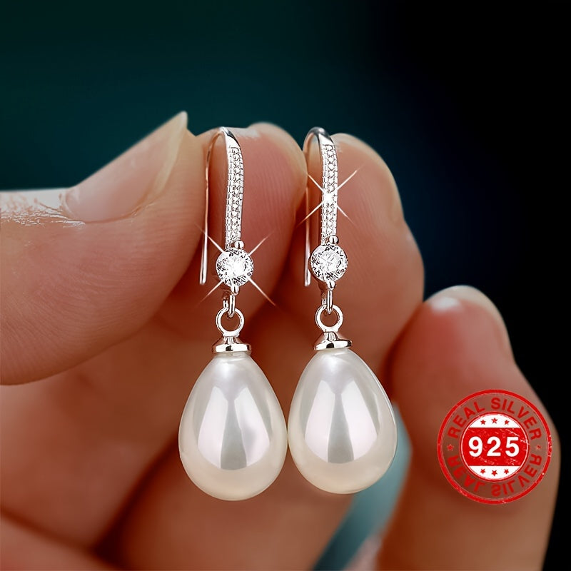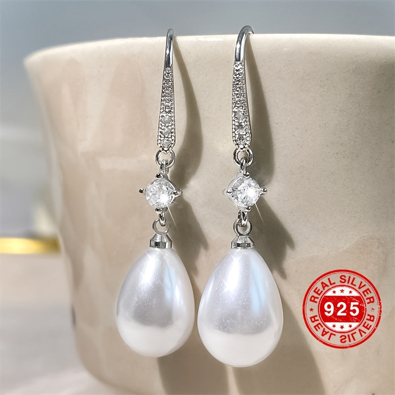 Golden Pearl Earrings 18K Plated 925 Sterling Silver Drop Earrings