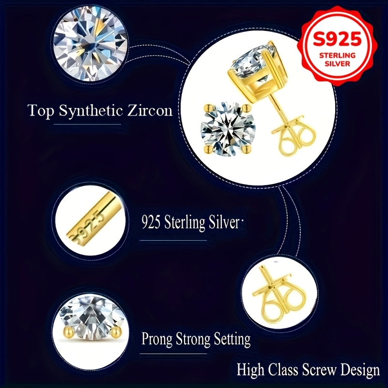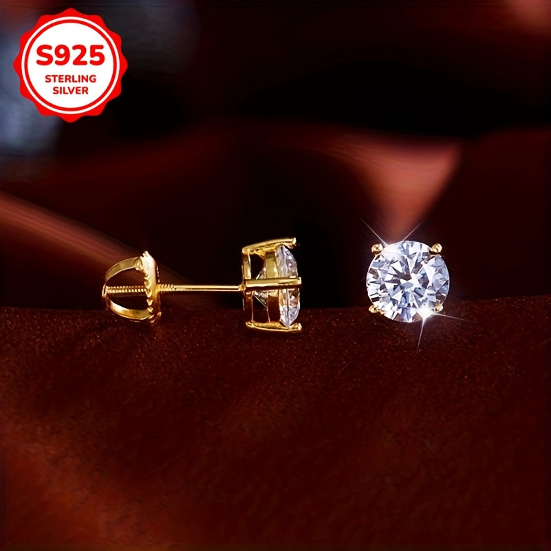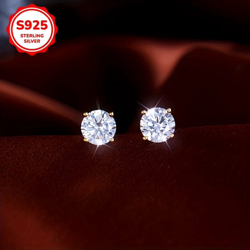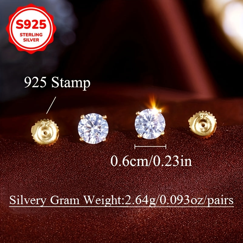 Golden Yellow S925 Silvery Stud Earrings 6MM Zirconia Women Daily