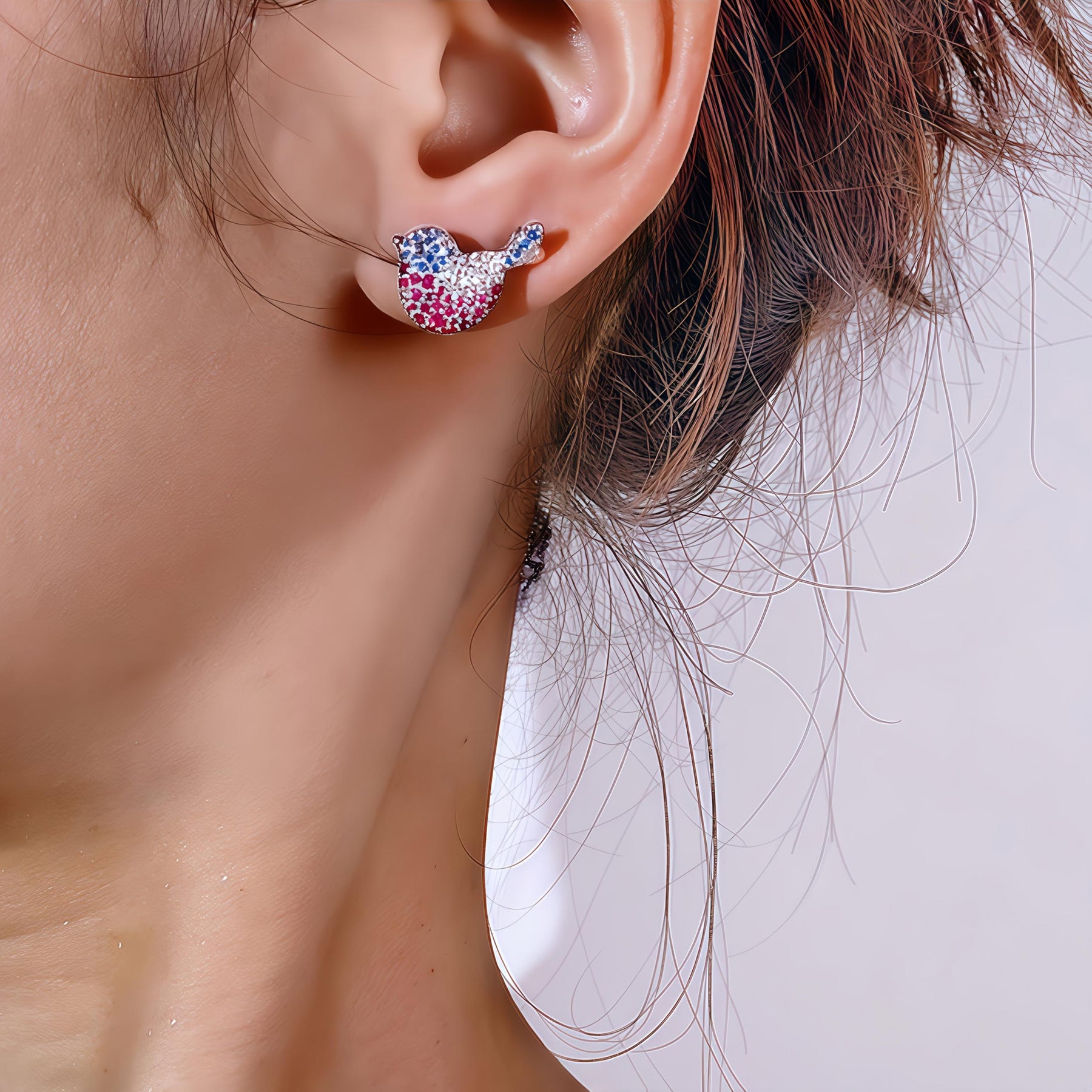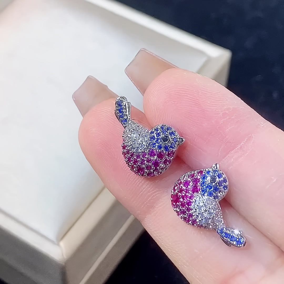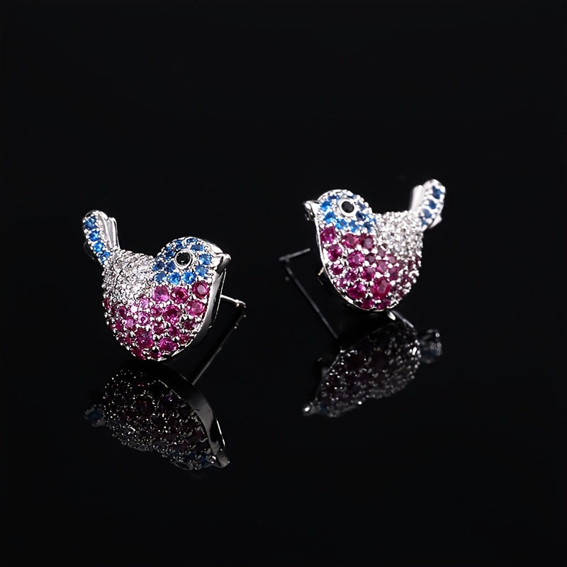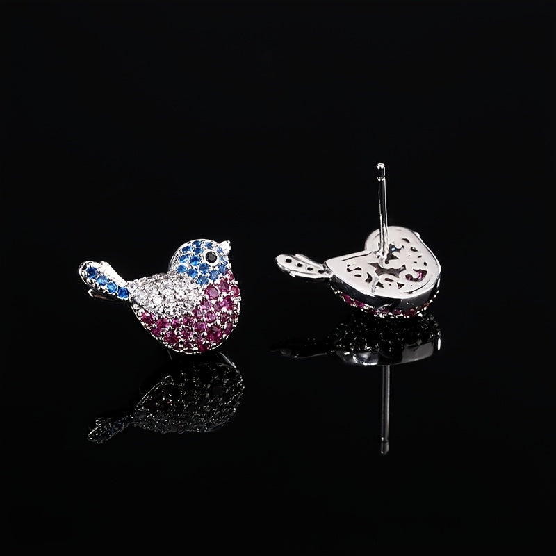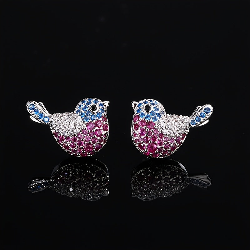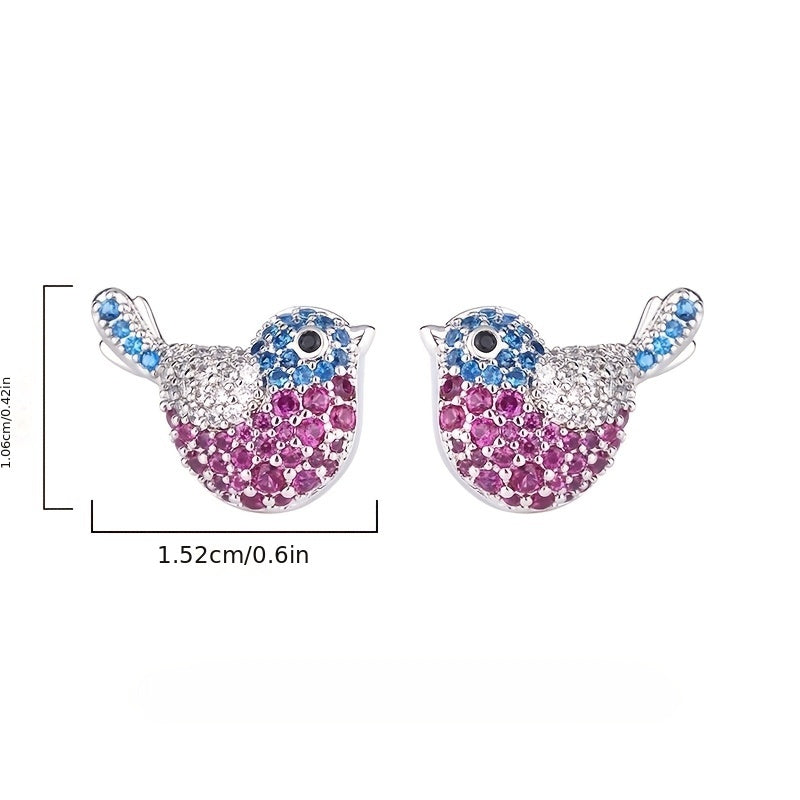 Hummingbird Shape Zirconia Earrings 925 Silver Needle Low Sensitivity