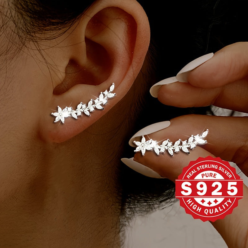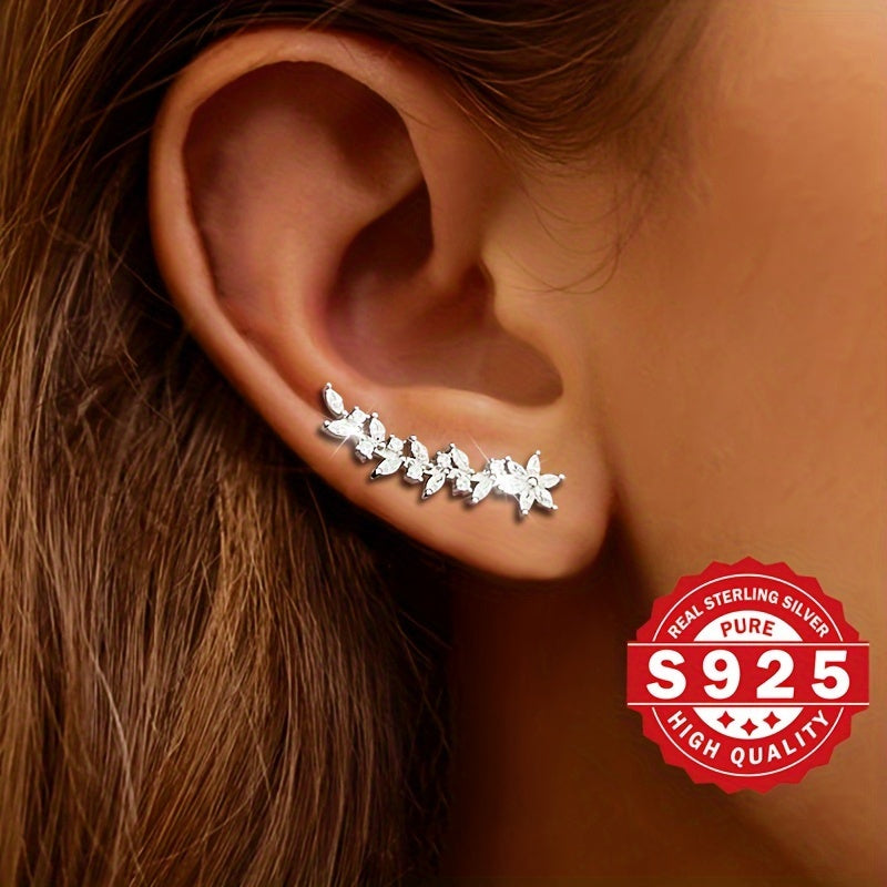 These s925 silver earrings feature a leaf shape with sparkling zirconia inlay, making them perfect for parties and as a gift for women. They are fashionable and elegant.