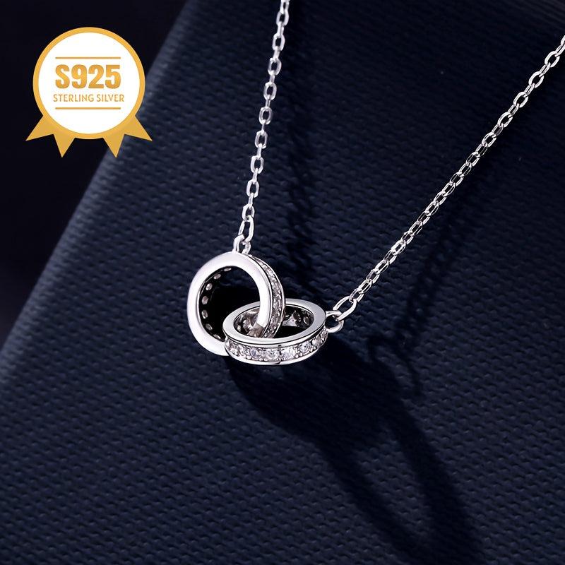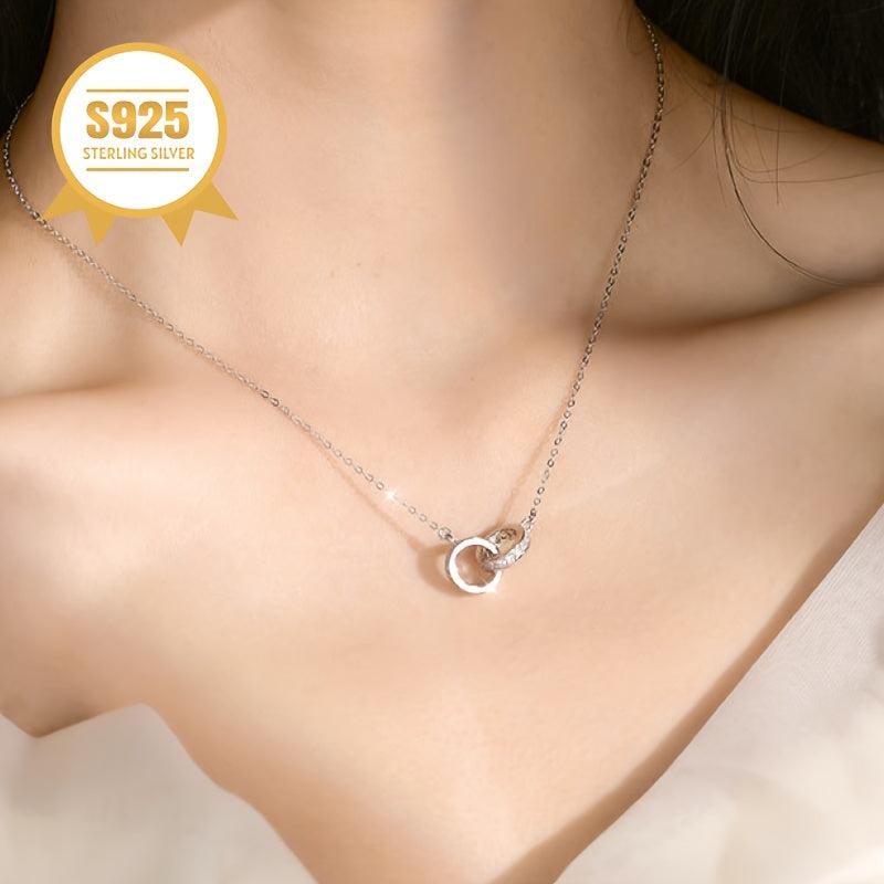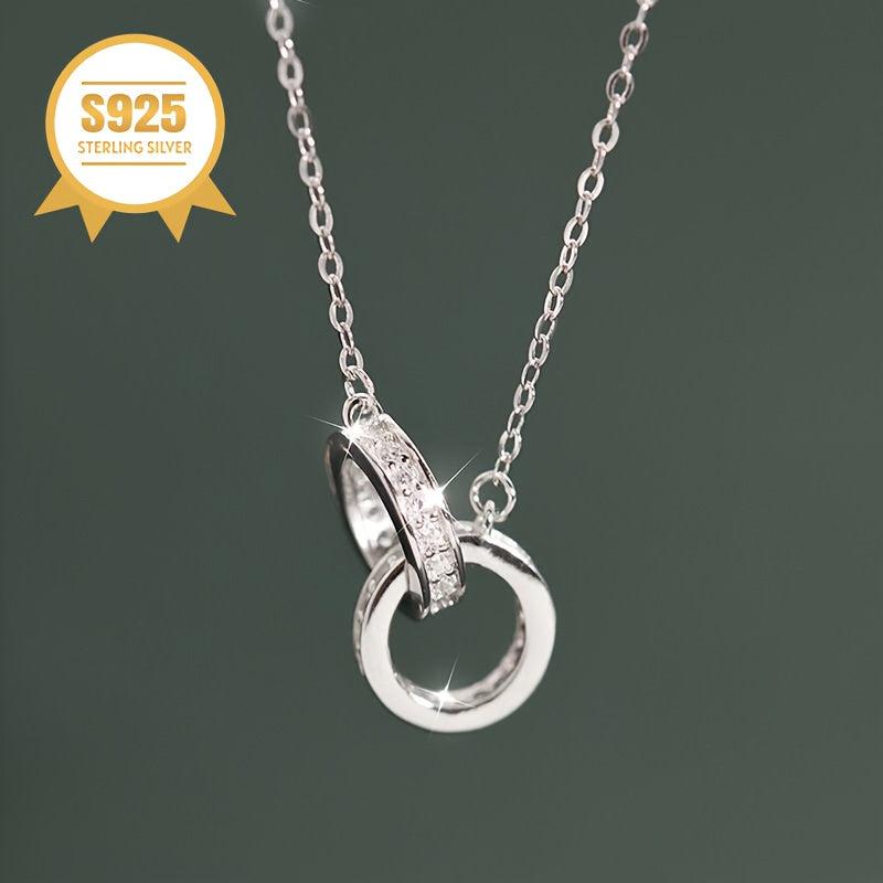 This double ring necklace is designed for women with sensitive skin, made of hypoallergenic materials. The light and versatile round ring pendant adds a touch of elegance to any outfit.