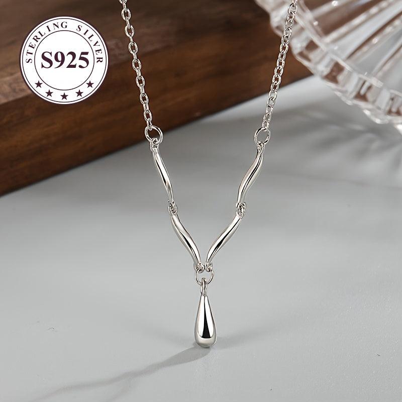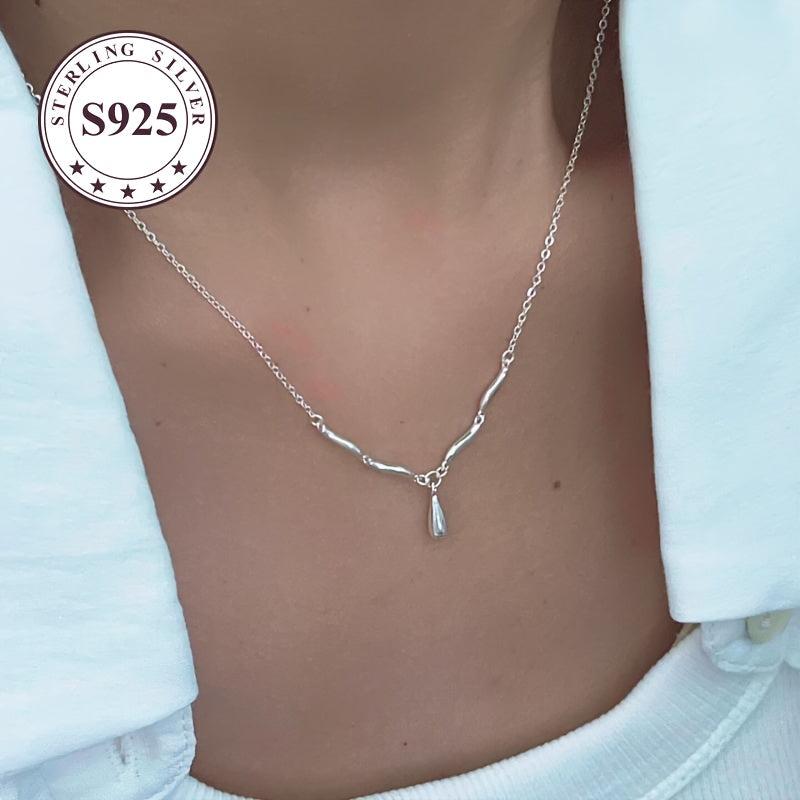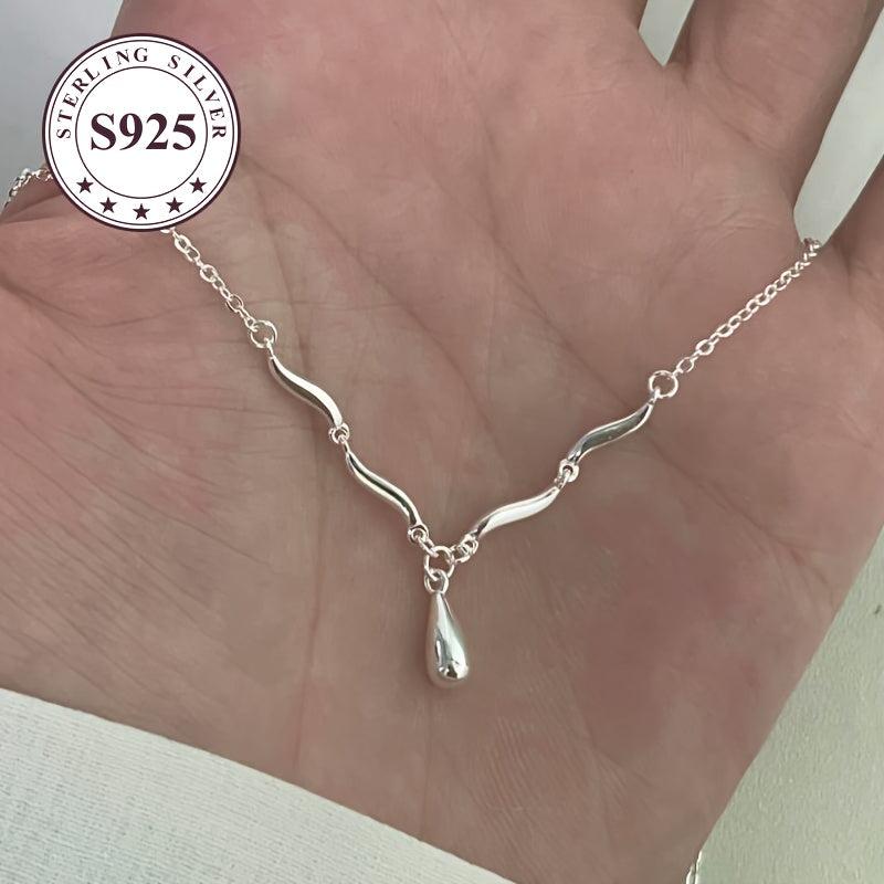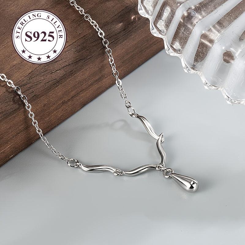 This low allergy wave water drop necklace features a sophisticated style and a minimalist glossy surface. It's perfect for everyday wear and adds a touch of elegance to any outfit.