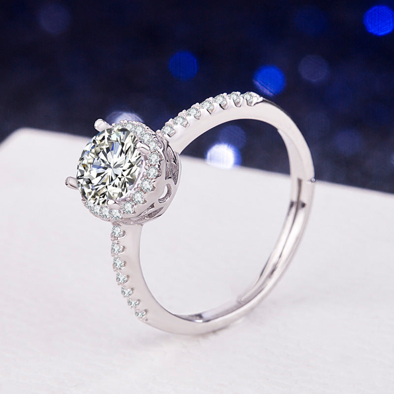 This classic four-claw moissanite ring is perfect for anniversaries and birthdays, featuring an adjustable design for a comfortable fit.