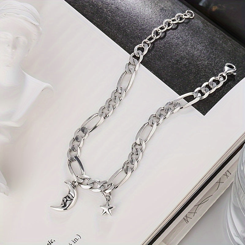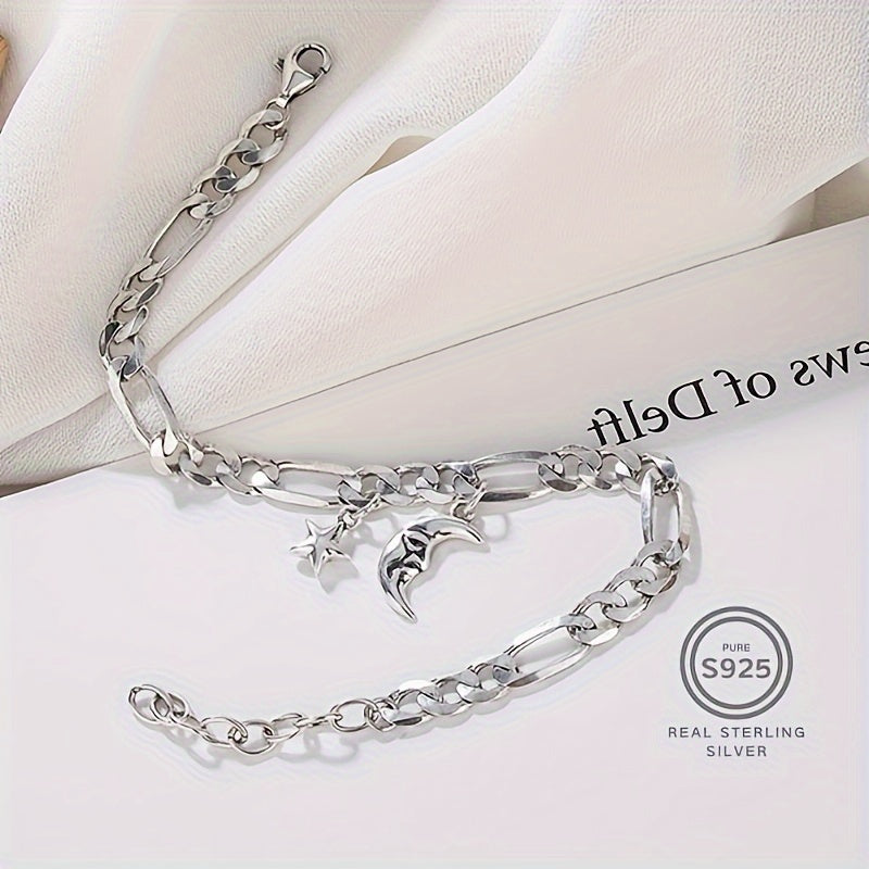 This S925 sterling silver bracelet features a vintage distressed design with a cold wind personality. The intricate moon and star accents add a touch of mystery and charm to your look.