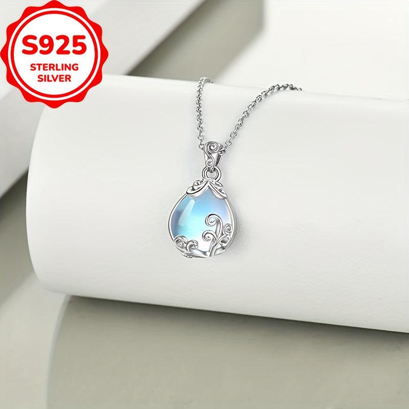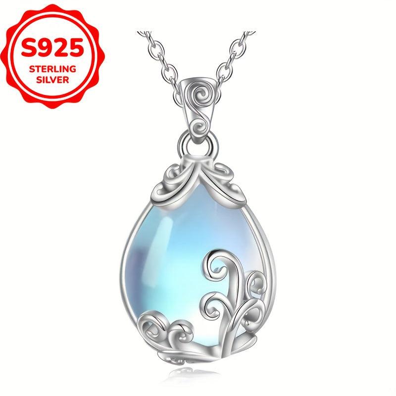 This elegant Moonstone pendant necklace is made of S925 silver, suitable for daily wear. It is a perfect gift for women with low allergy sensitivity.
