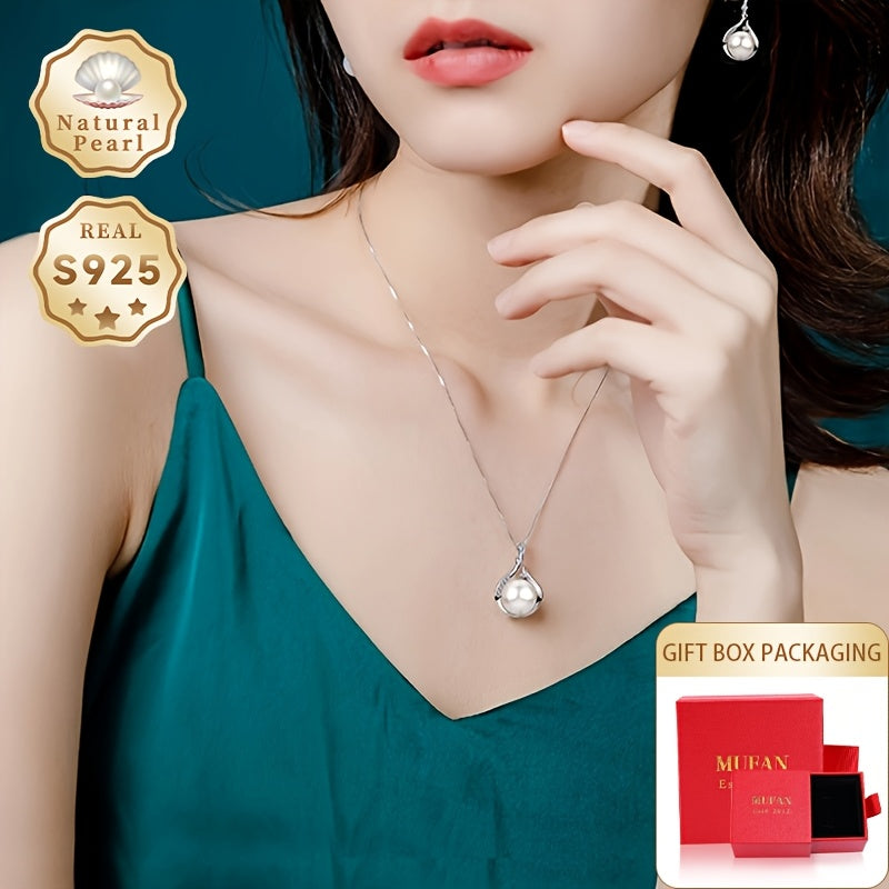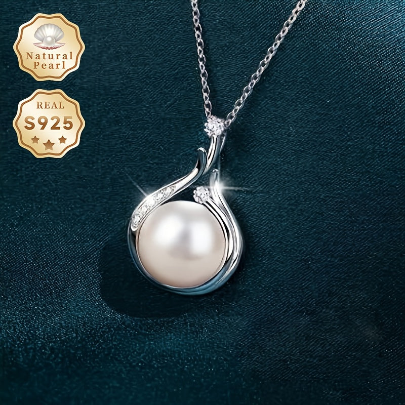Elegant pearl necklace with 10-11mm natural freshwater pearls and S925 silver pendant, perfect for women.