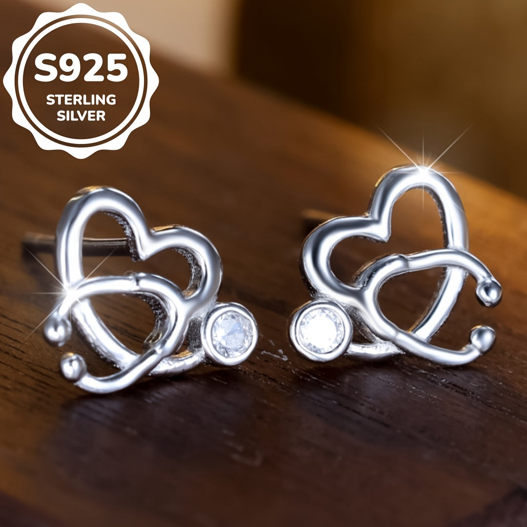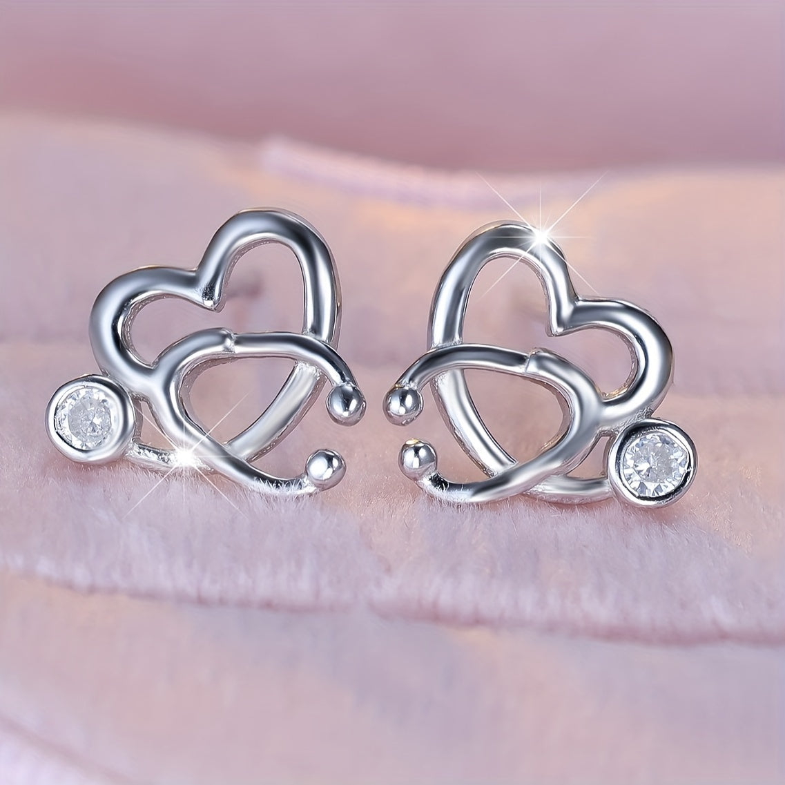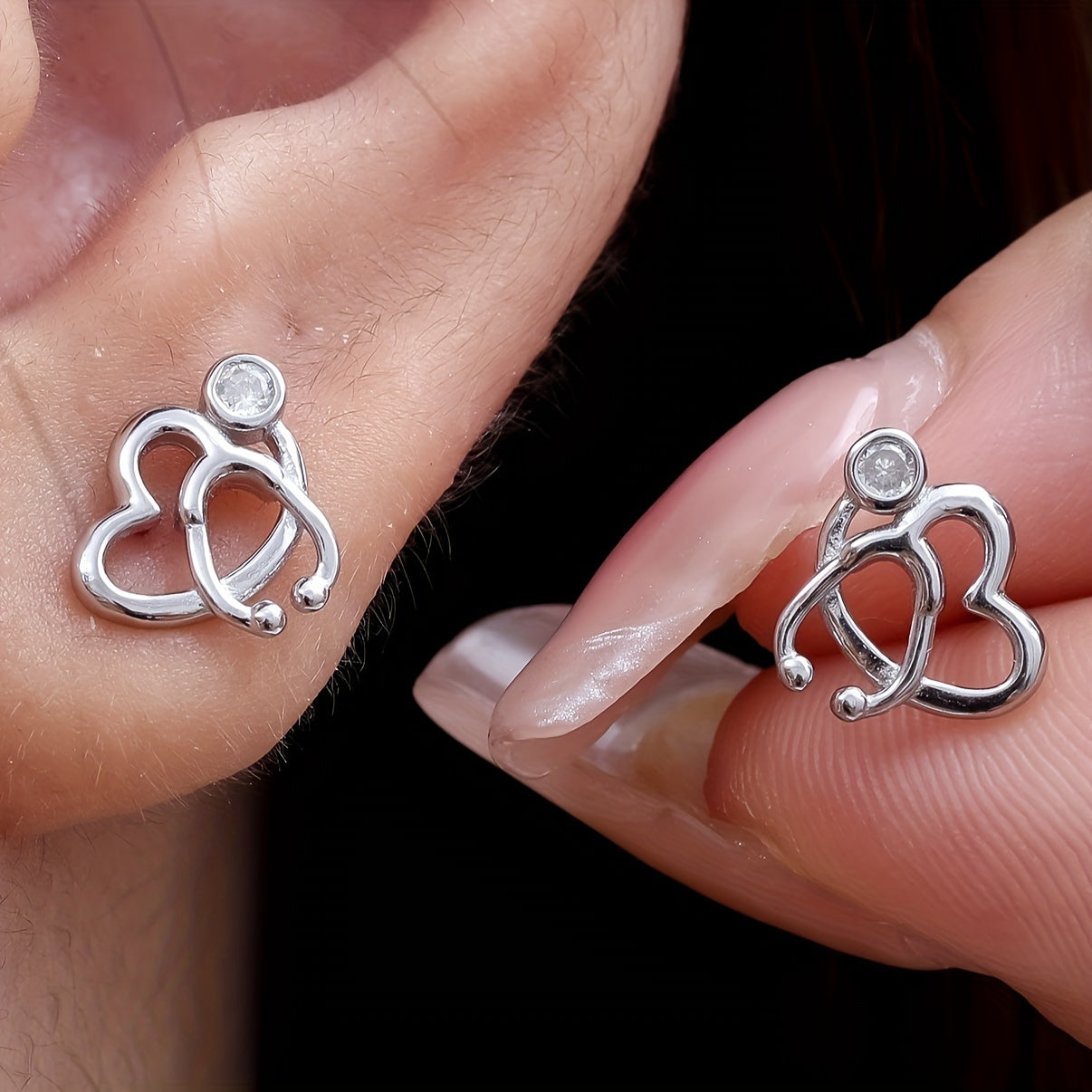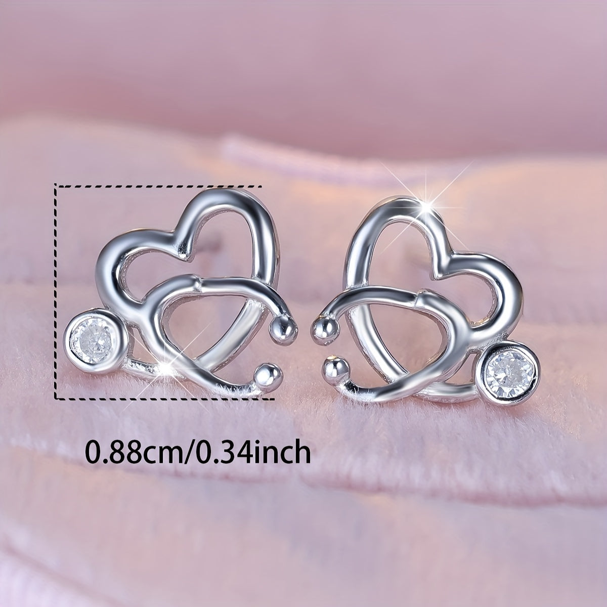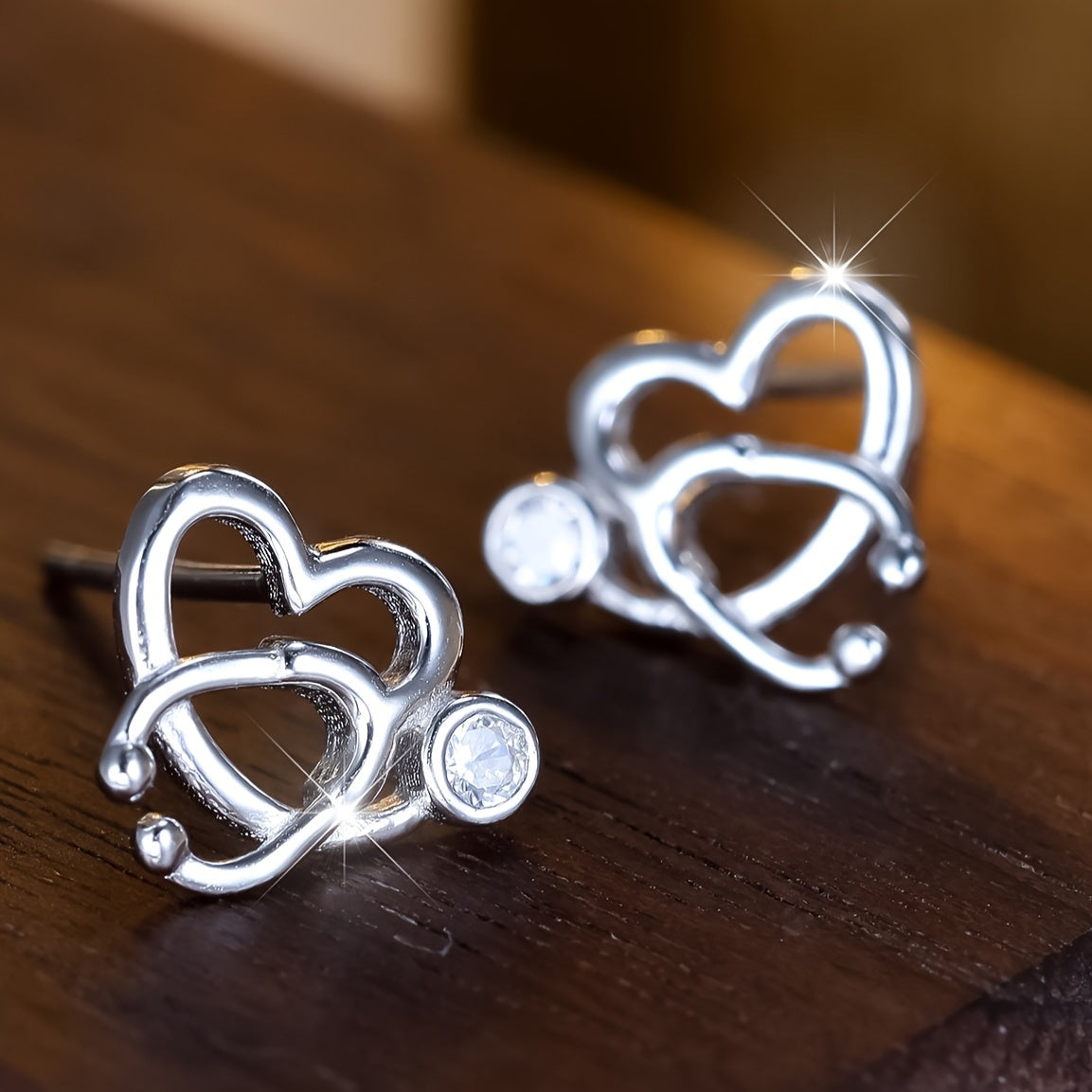 These delicate and lovely nurse stethoscope heart-shaped earrings are crafted from 1.9 grams of sterling silver S925. They feature zirconia accents and make a perfect gift for women. Comes with a gift box.