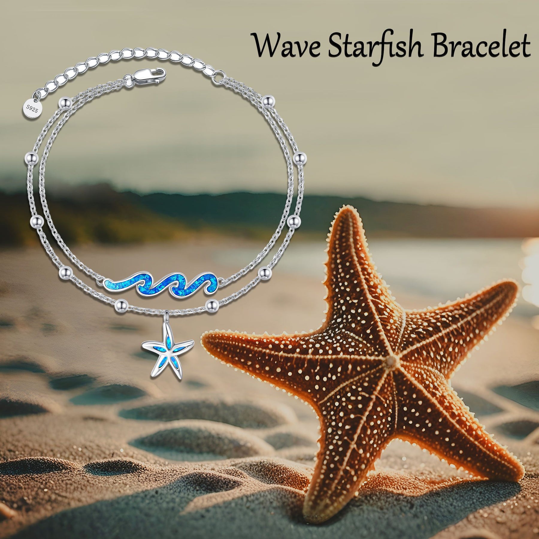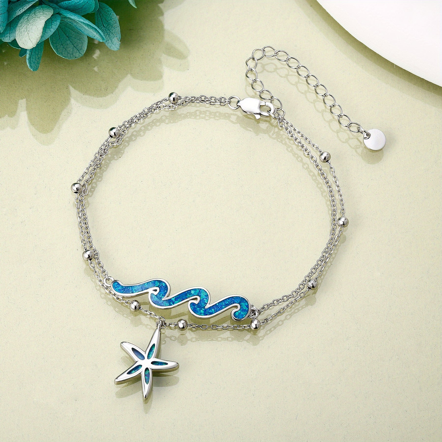 Opal Starfish Wave Layer Bracelet 925 Sterling Silver Women's Beach Jewelry