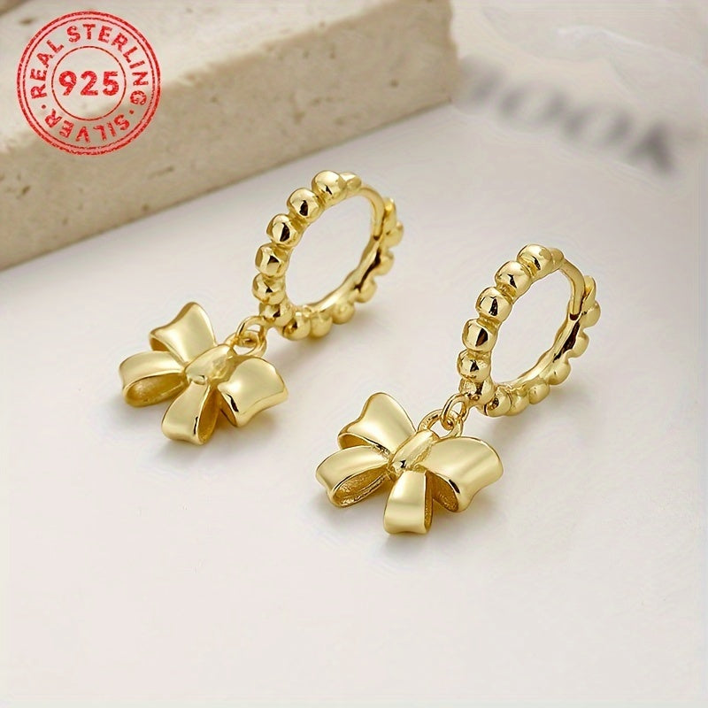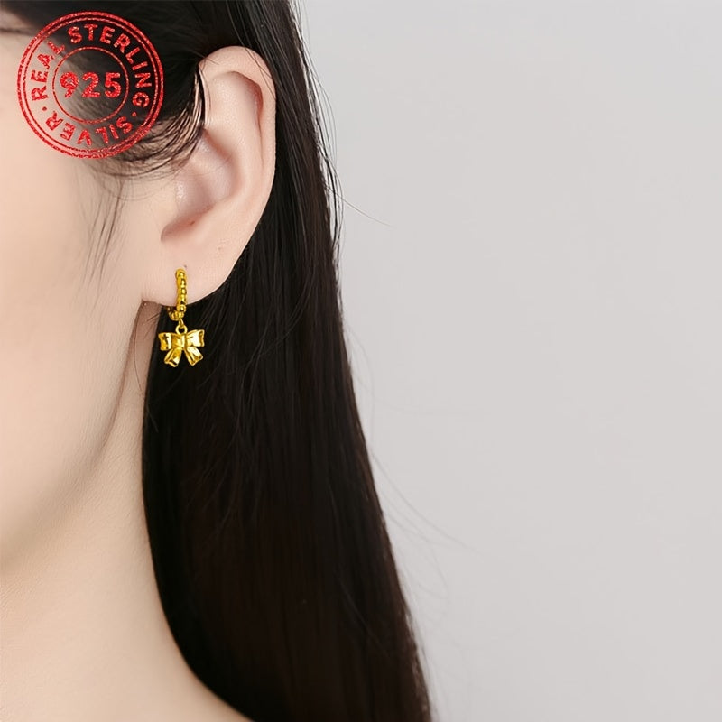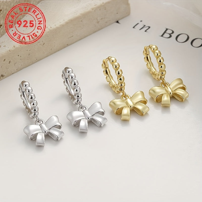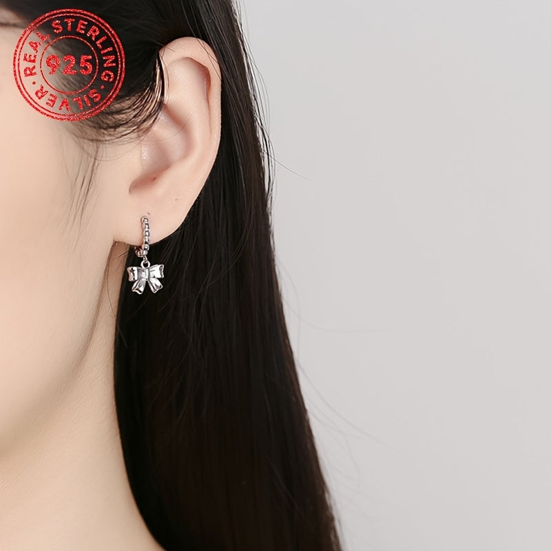 Adorn your ears with these sweet and ballet-inspired bow pendant earrings. Crafted from 925 silver, they are perfect for daily wear, holidays, weddings, and other special occasions.