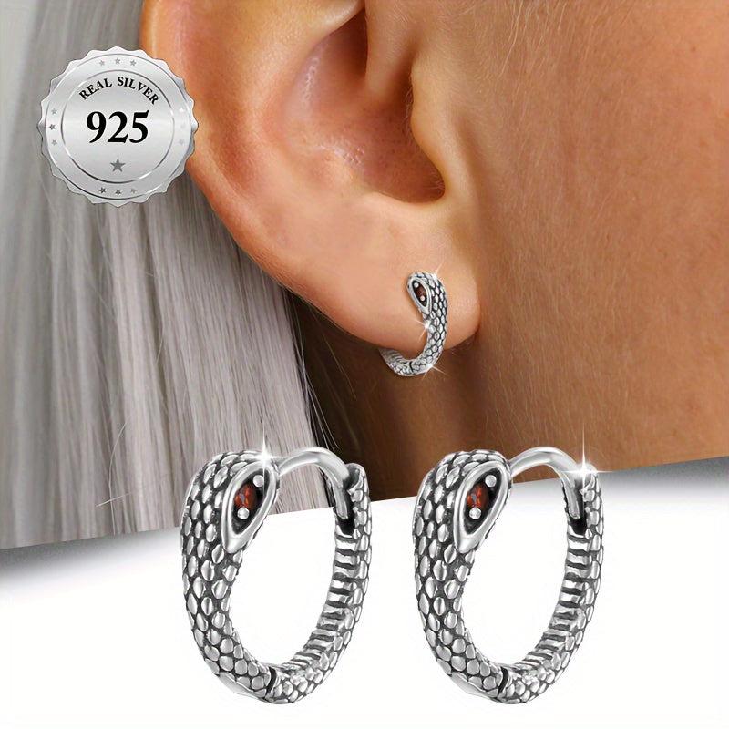 Add a touch of edgy style to your outfit with these python inspired earrings featuring a retro hip hop design. Made with S925 silver, these earrings are perfect for wearing to banquets, parties, or even daily outings. They also make a great gift for Thanksgiving or any special occasion.