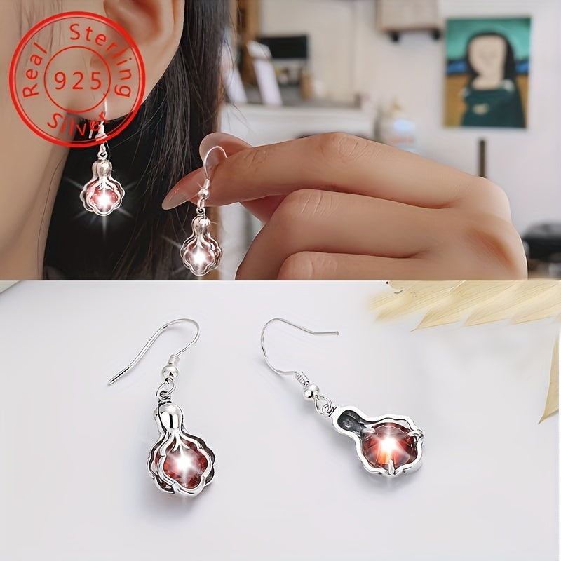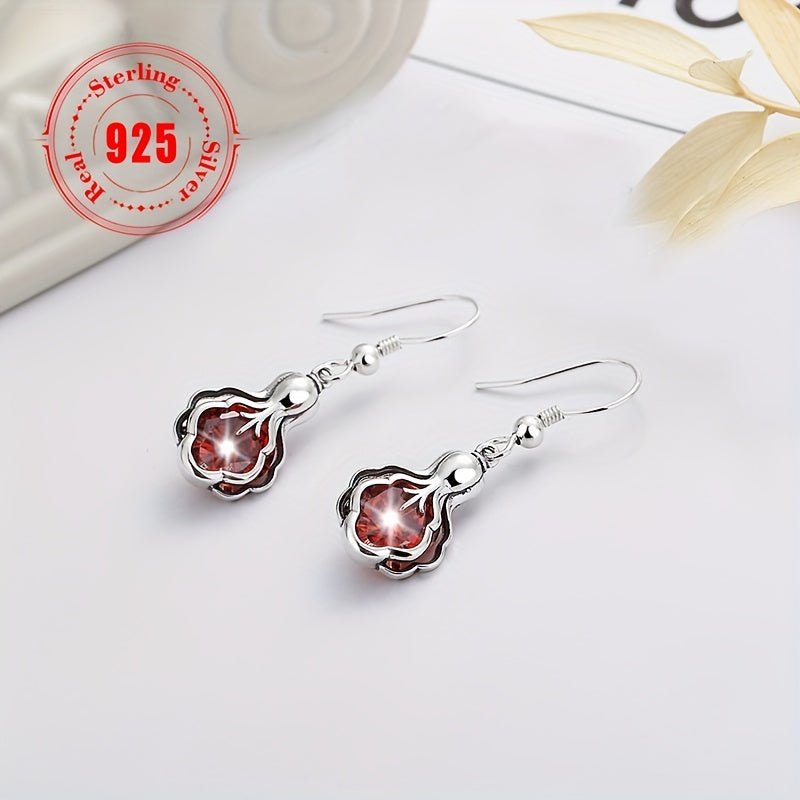 Add a touch of elegance to your look with these stylish earrings featuring a classic and tassel gourd design in red synthetic zirconia and 925 silver. The total weight of the earrings is 3.3 grams.