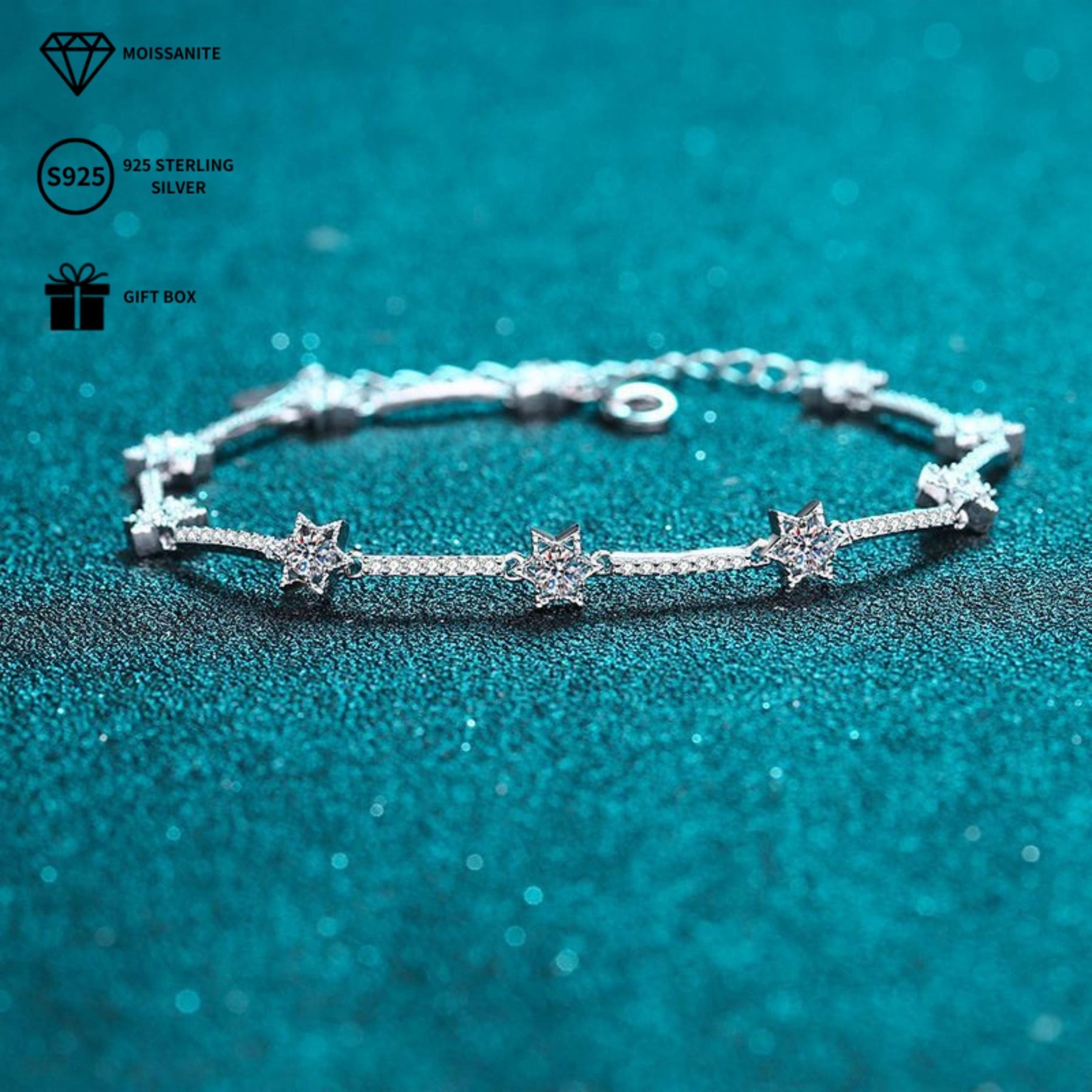 This stunning S925 silvery bracelet features a 1ct moissanite star charm with a six-pointed star design. It's the perfect accessory for birthdays, Halloween, Christmas, anniversaries, and parties.