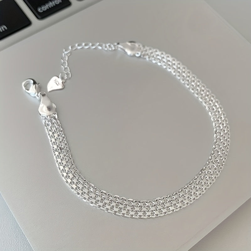 S925 Layer Lace Braided Bead Chain Bracelet Gift for Her