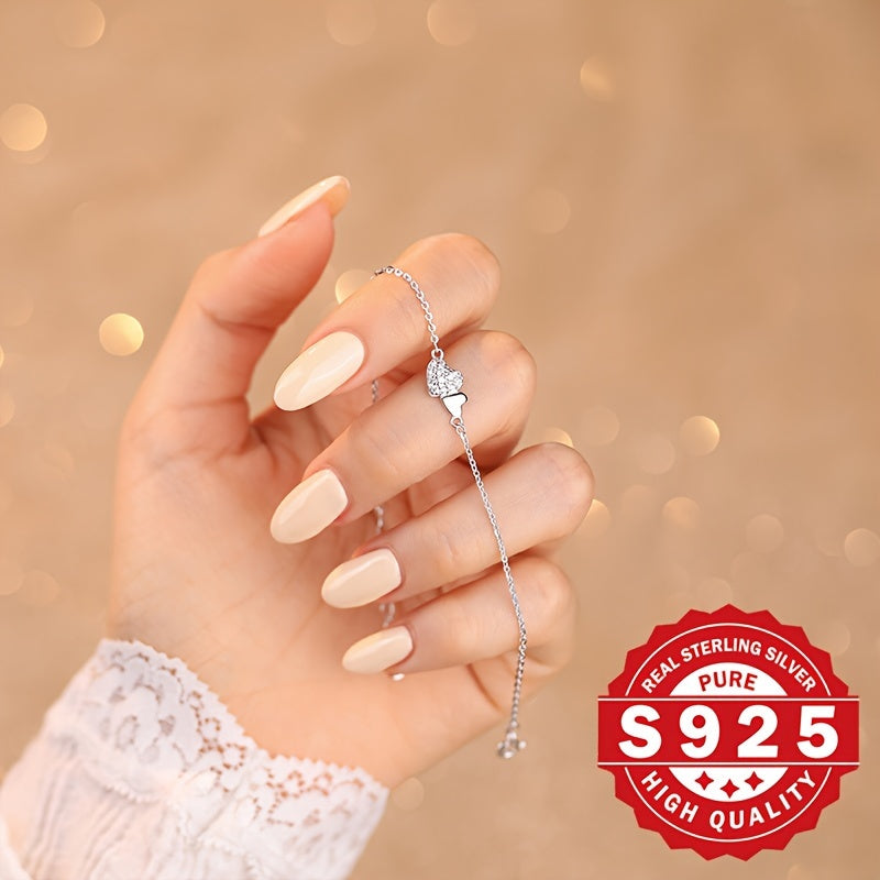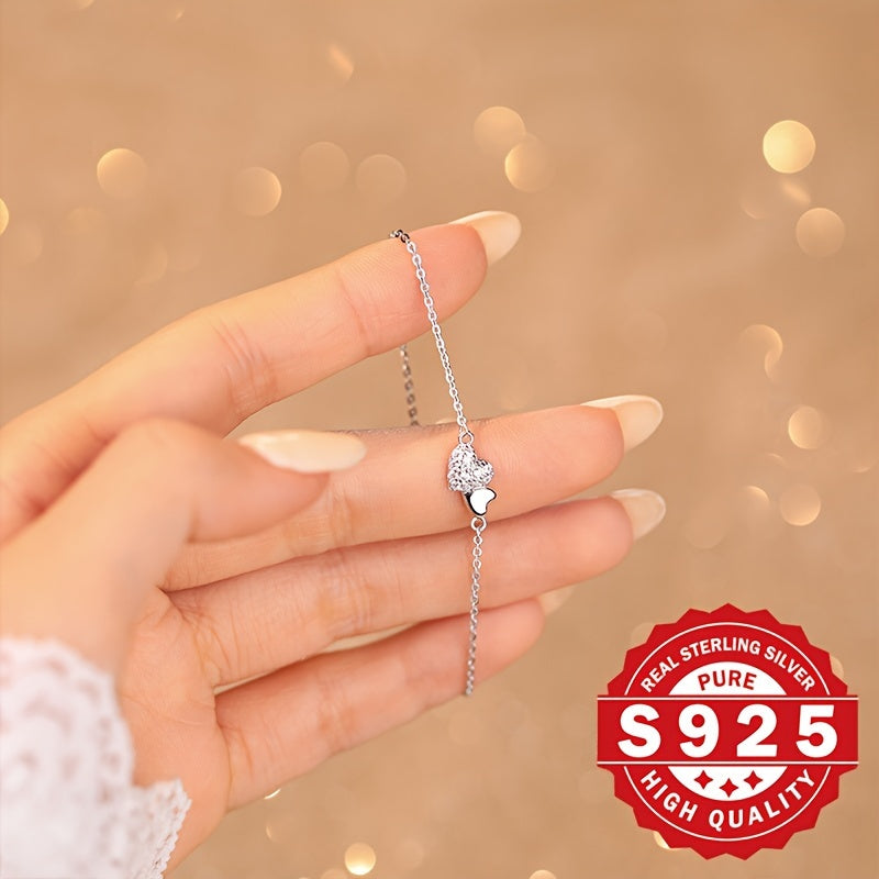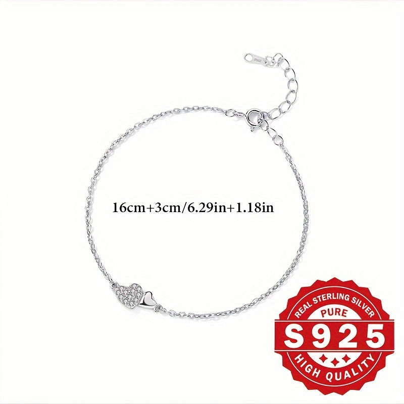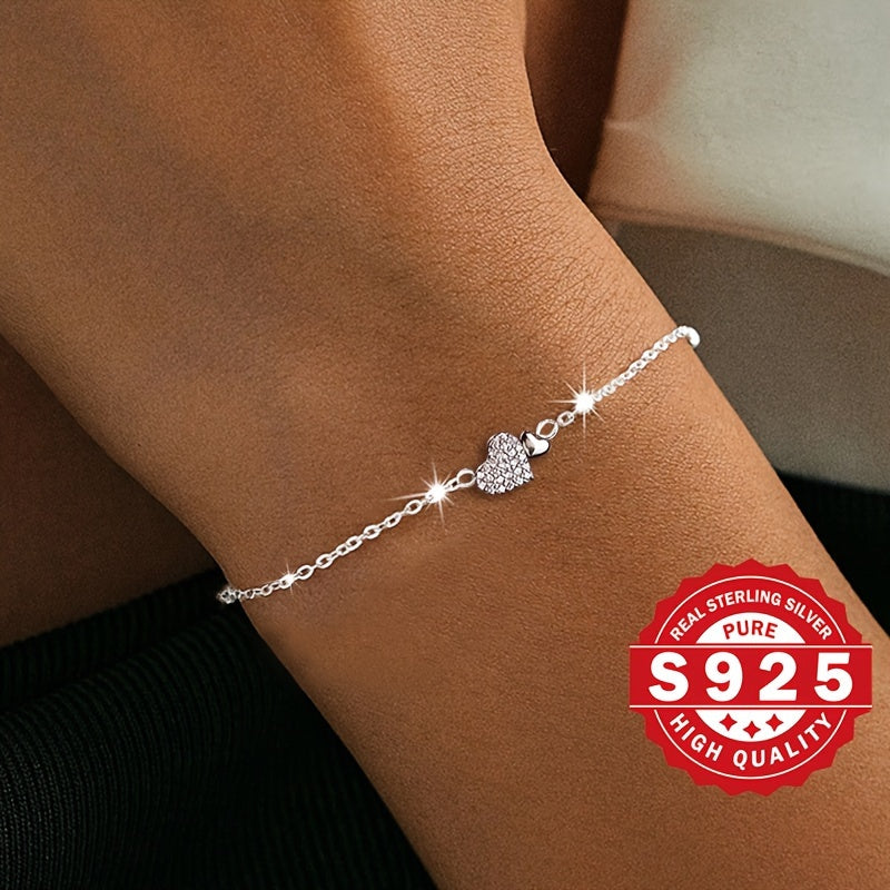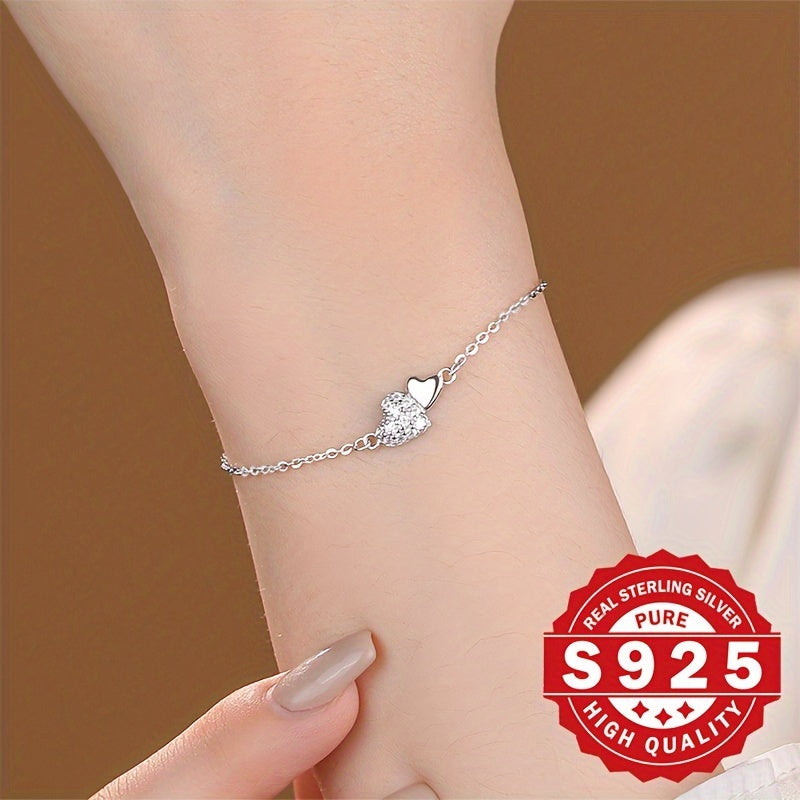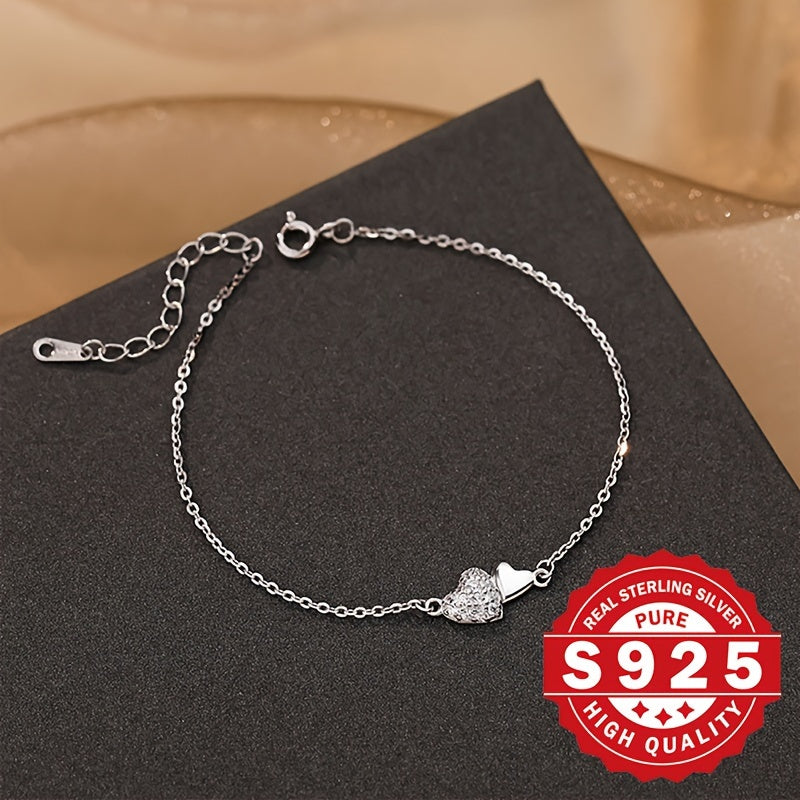 S925 Pure Silvery Love Bracelet with Zirconia Heart - Daily Wear