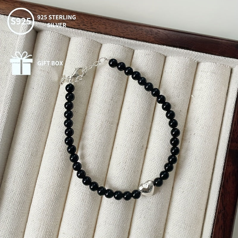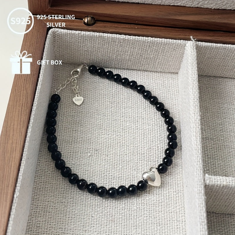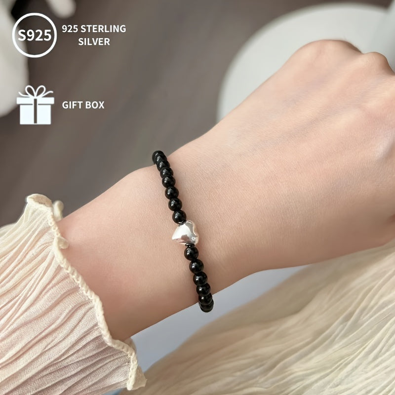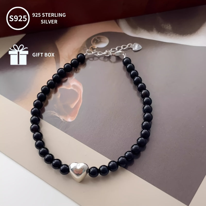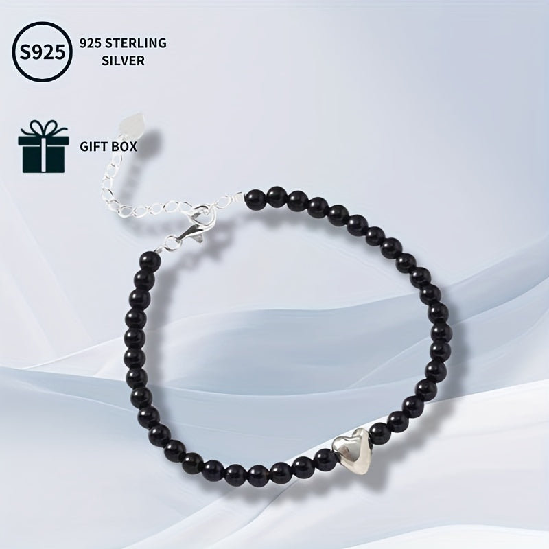 This stunning S925 sterling silver bracelet features agate beads with a heart charm. Perfect for your Thanksgiving gift or vacation theme. The bracelet is plated with 925 silver and weighs 4.6g.