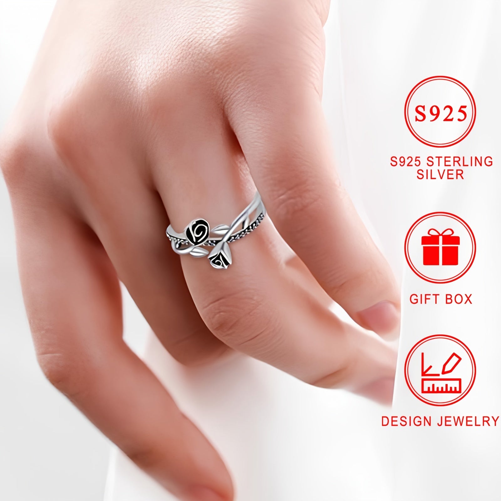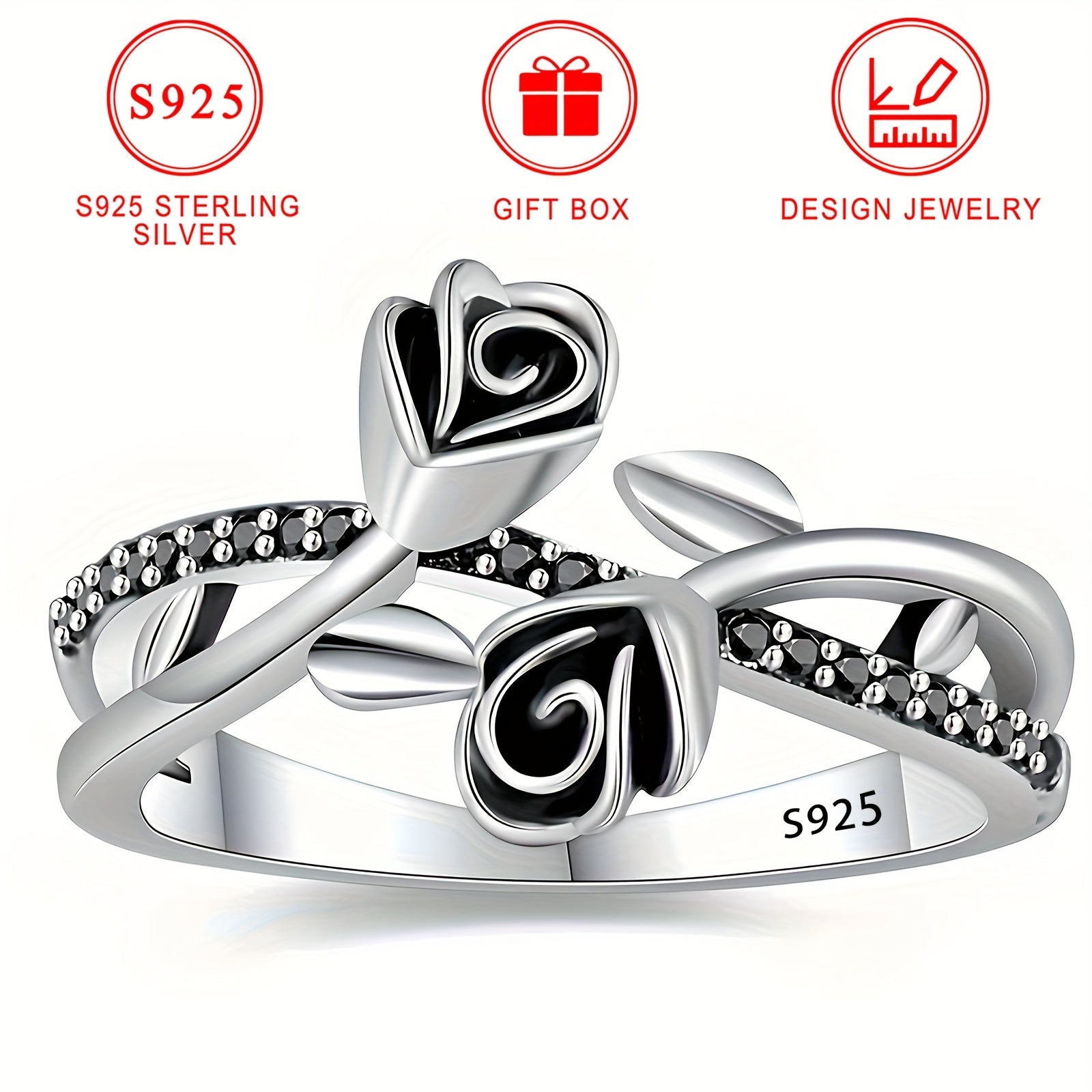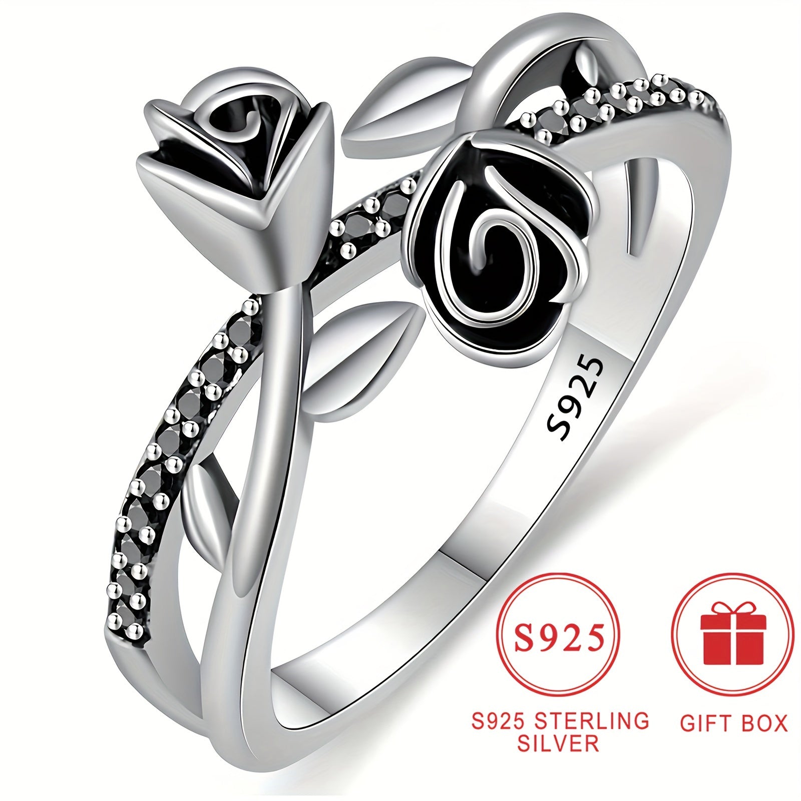 S925 Silver Cross Rose Ring Synthetic Zirconia Vintage Ring Jewelry