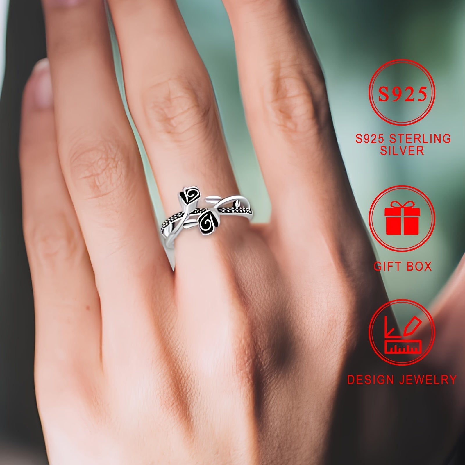 This S925 silver cross rose ring is a beautiful and elegant piece featuring synthetic zirconia. Perfect for daily wear, parties, weddings, anniversaries, and gifts. Designed to be low-allergy and nickel-free.