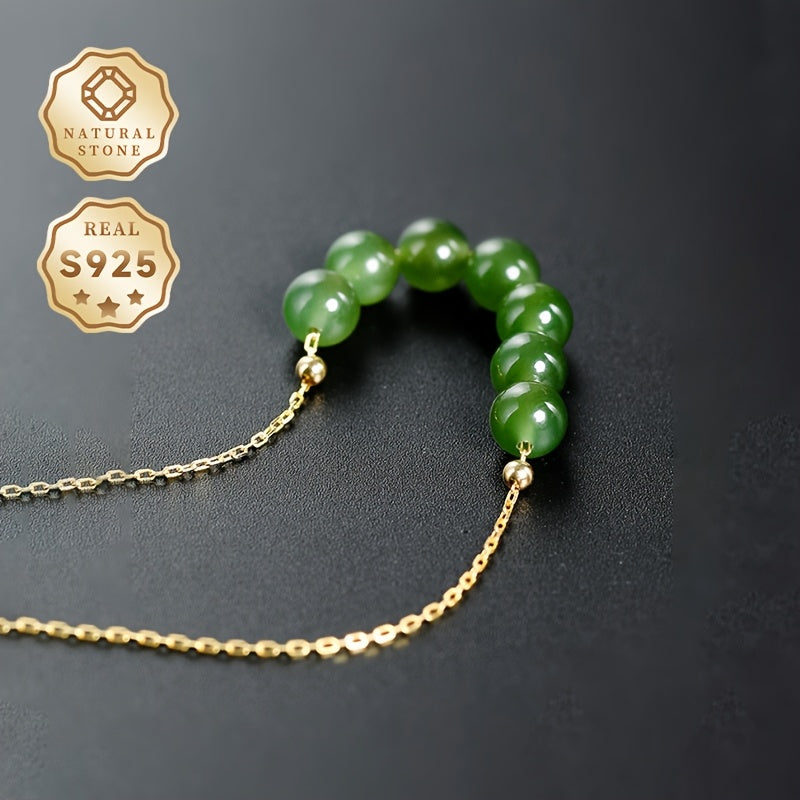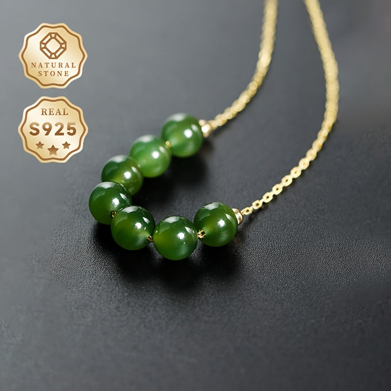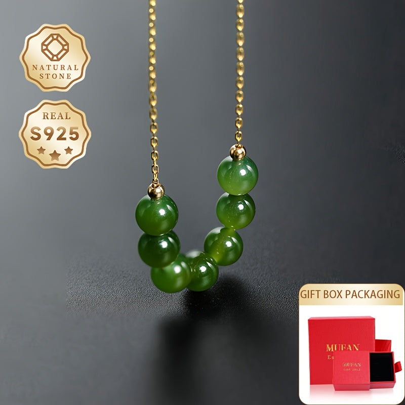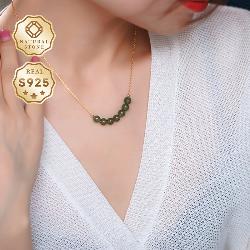 This stunning pendant necklace features a 6-7mm green natural stone set in S925 silver. A perfect gift for women who appreciate natural beauty.