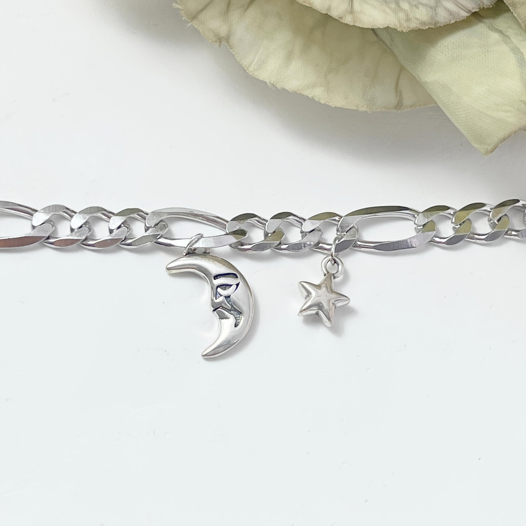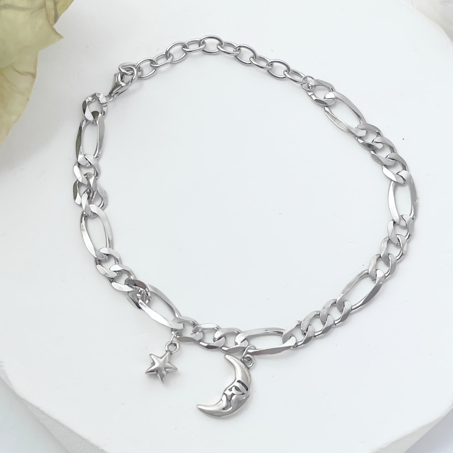 S925 Silver Moon Star Bracelet, Avant Garde Design, Birthday Gift