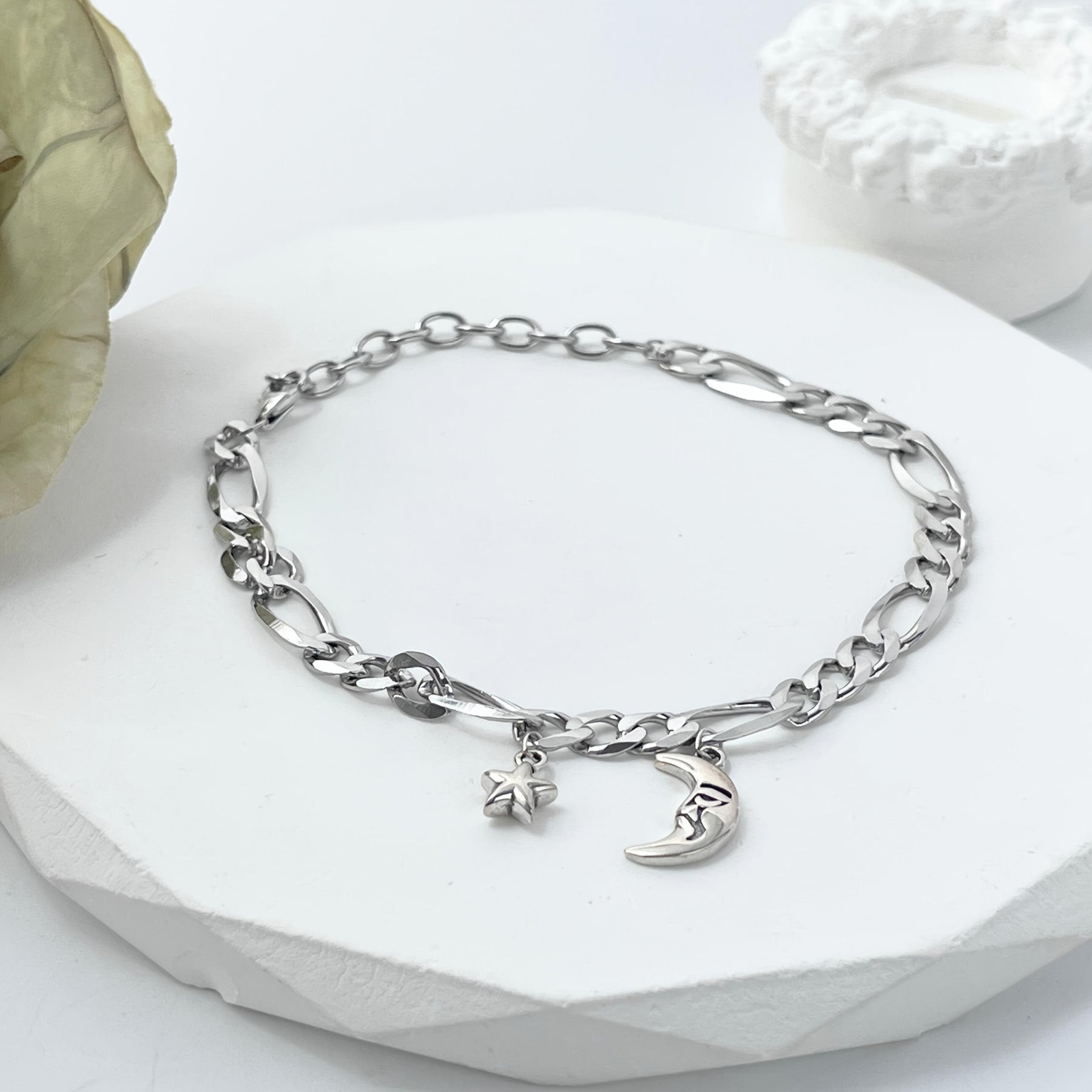 Elevate your style with this avant-garde moon and star bracelet crafted from S925 silver. Perfect for daily wear and makes a thoughtful birthday gift.