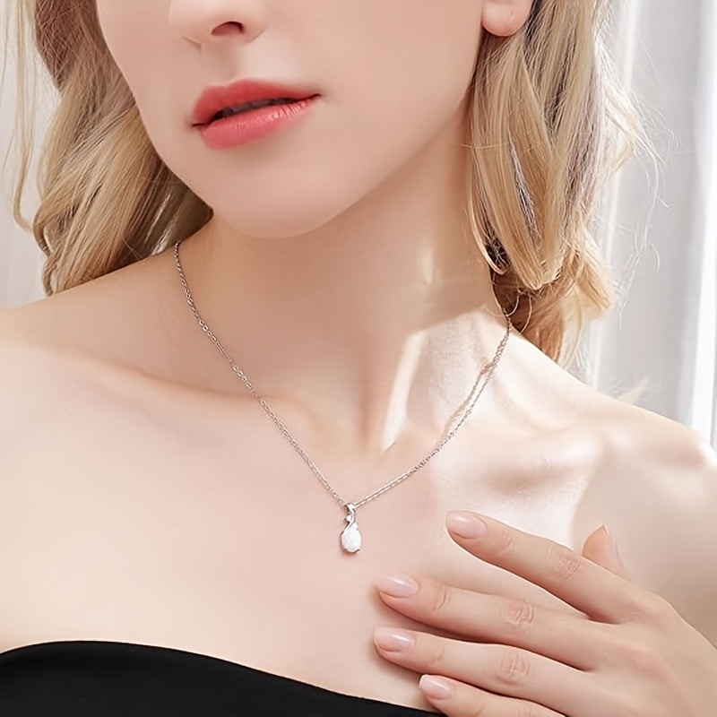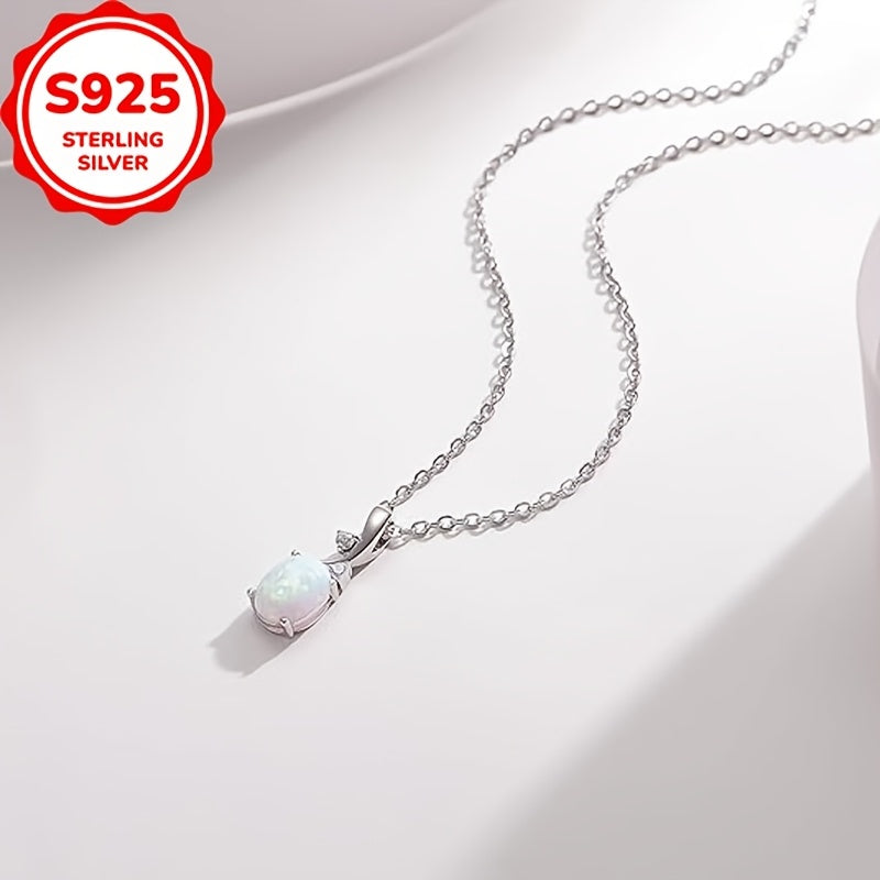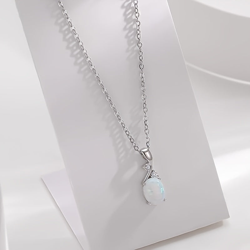 Elegant pendant necklace featuring opal and synthetic zirconia inlay on solid s925 silver. Perfect for daily wear with low allergy risk. Necklace weight is 3.8 grams.