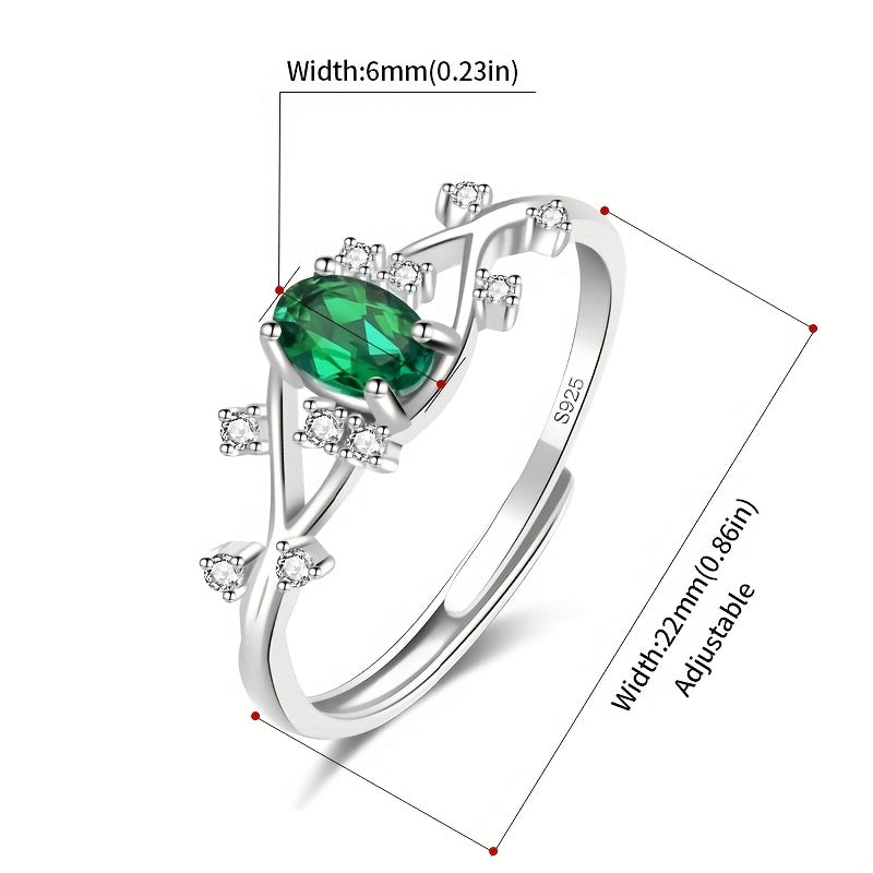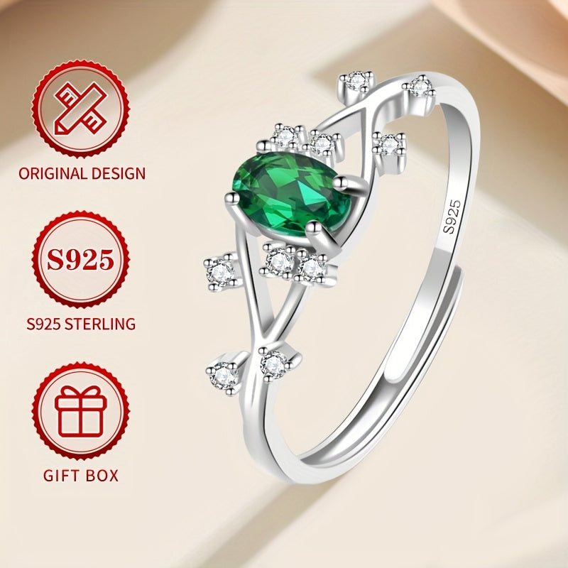 This stunning S925 silver ring features synthetic zircons and a vibrant green spinel, making it the perfect symbol of love and devotion.