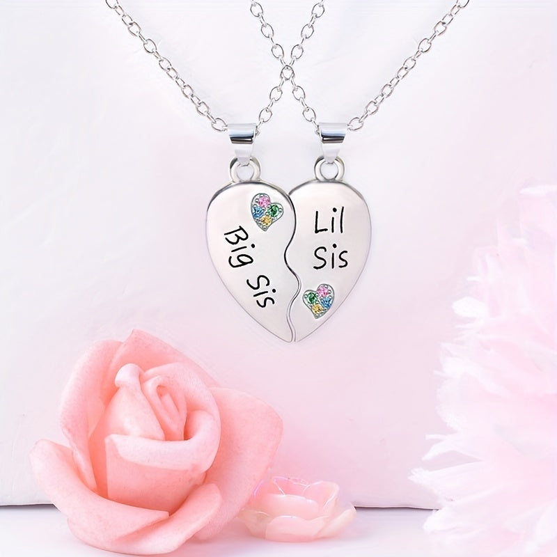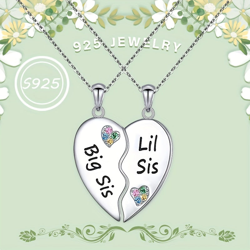 This beautiful S925 sterling silver heart necklace is the perfect gift for sisters, featuring colorful cubic zirconia splicing. Ideal for birthday and family celebrations.