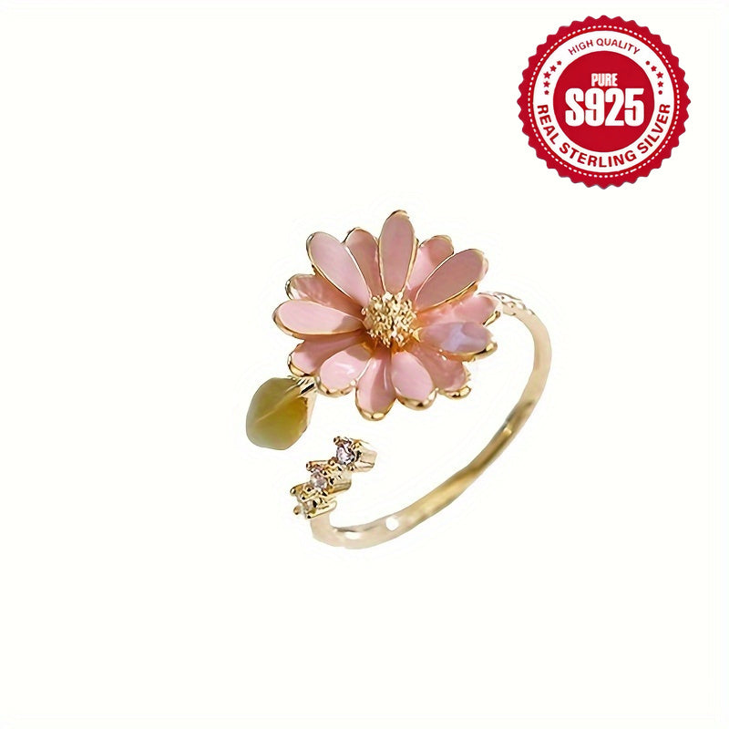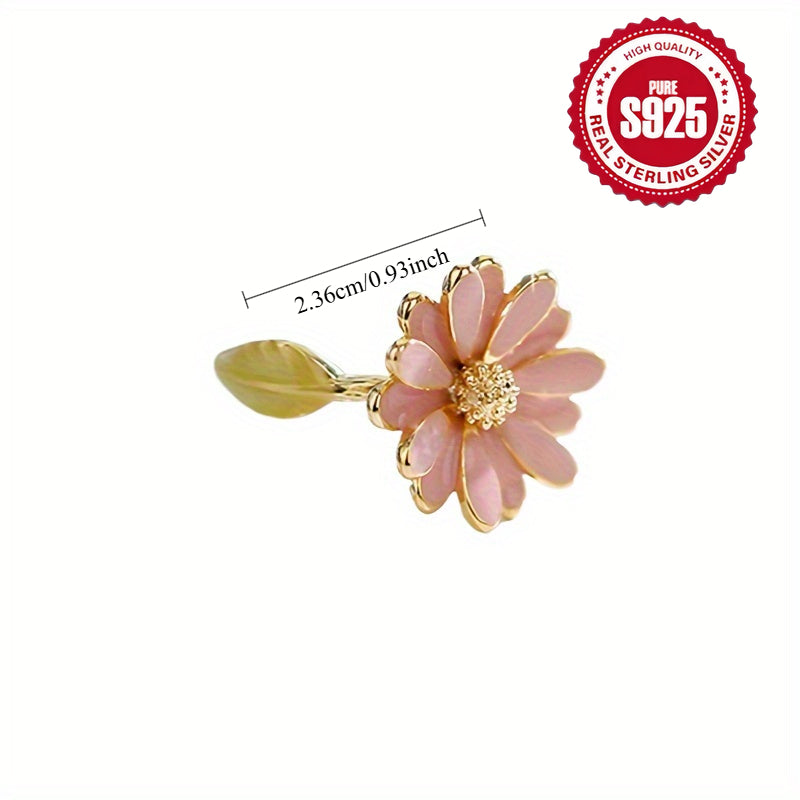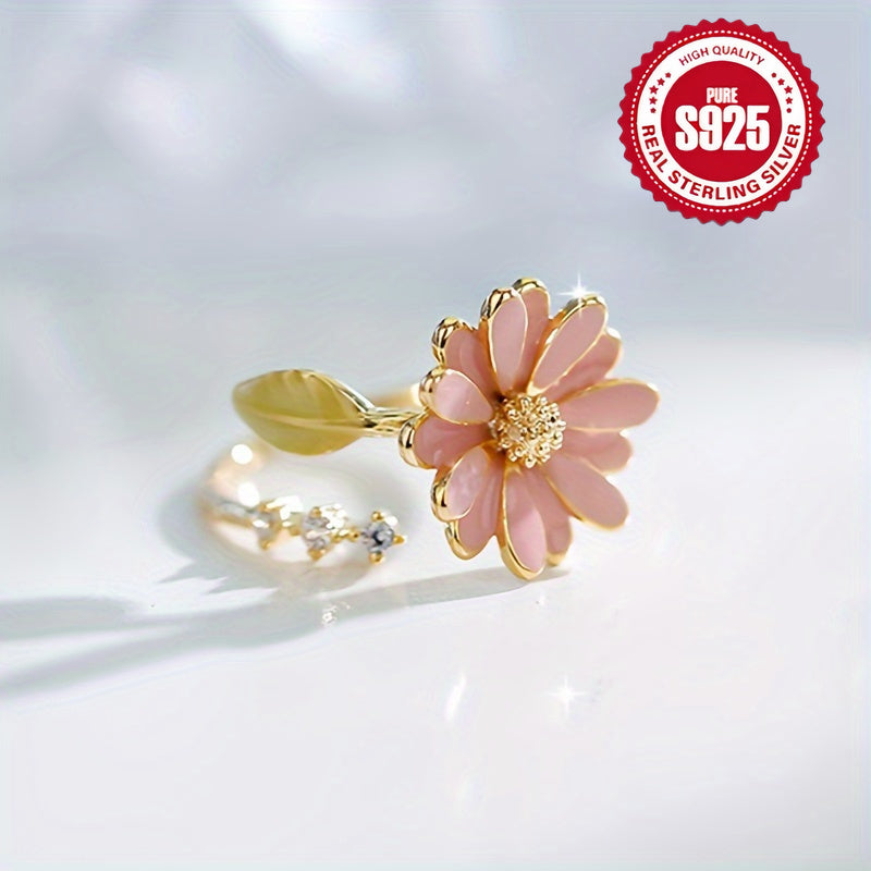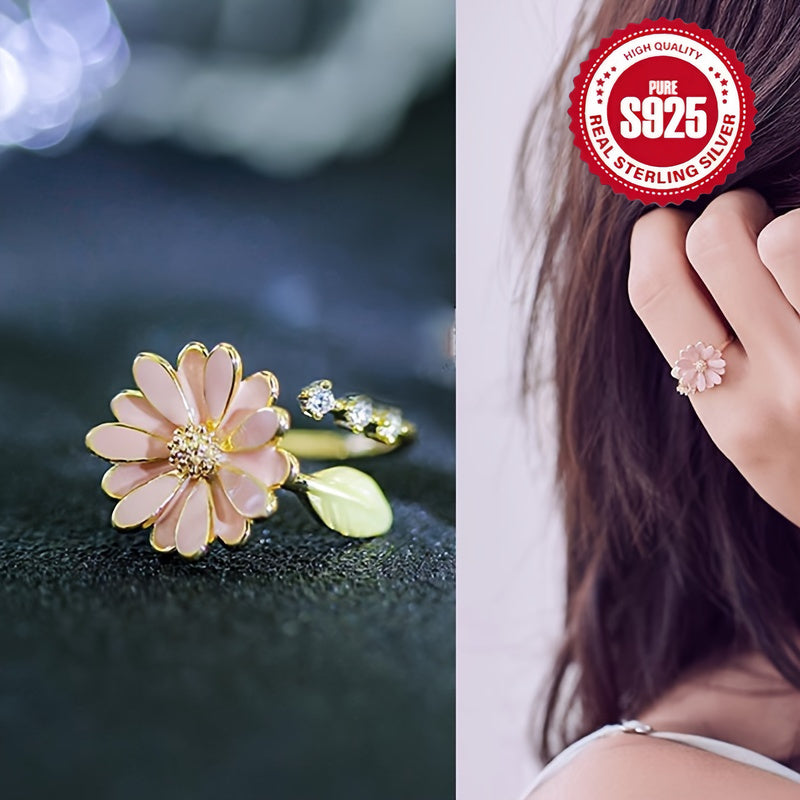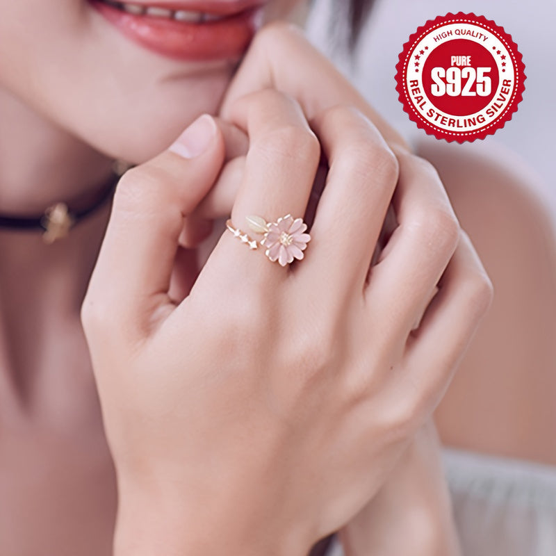 Delicate S925 silver open loop bracelet with sweet spring flower and leaf design. Perfect for daily wear or as a thoughtful gift.