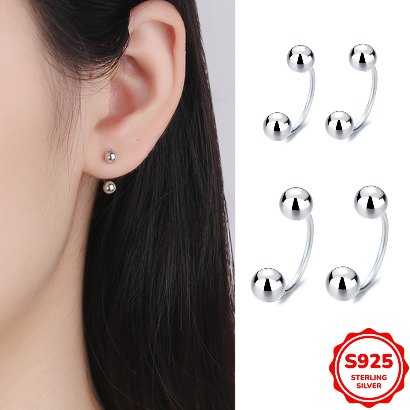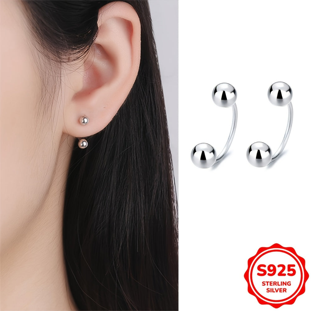 Add a touch of elegance with this pair of S925 pure silvery bean round beads earrings. Fashionable and small, perfect for everyday wear.